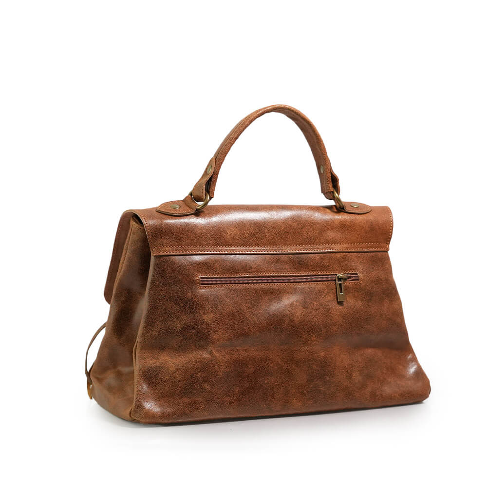 Geanta este prevazuta cu o curea din piele pentru a fi purtata in mana sau pe brat si o curea detasabila ce permite purtarea pe umar.