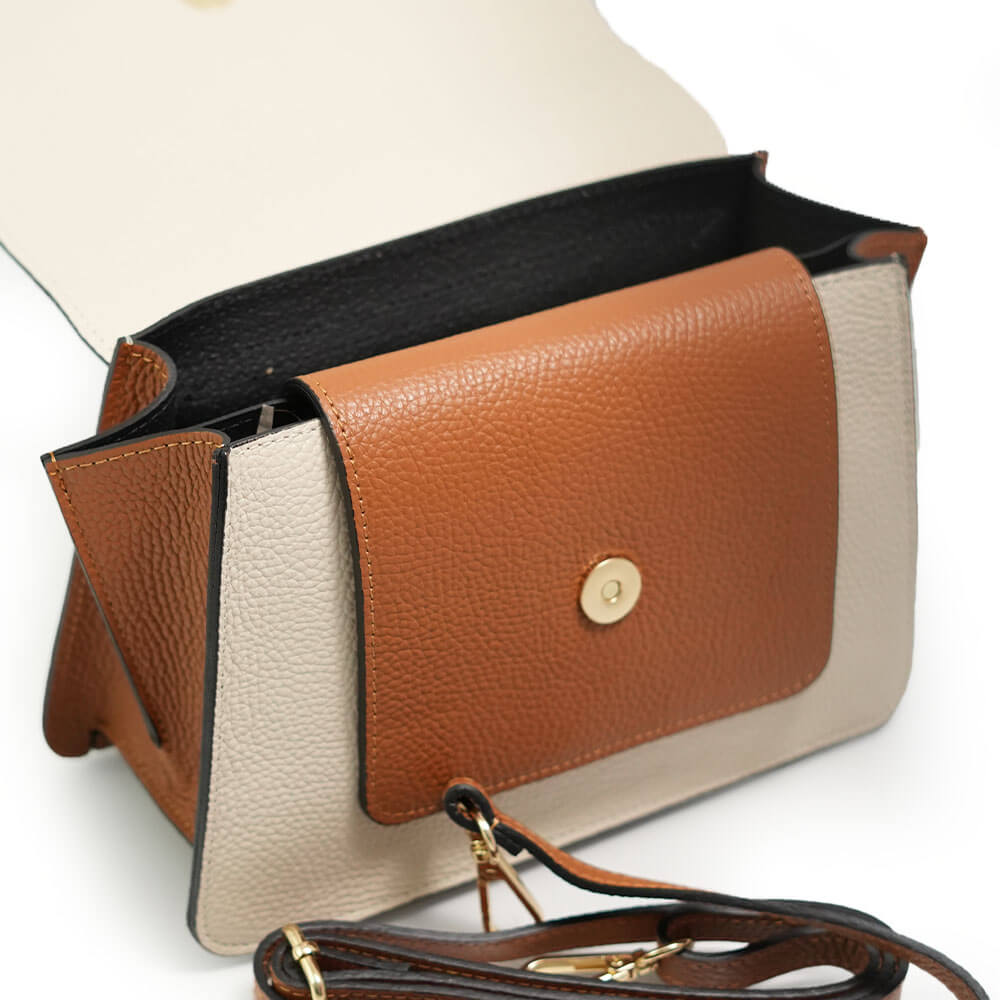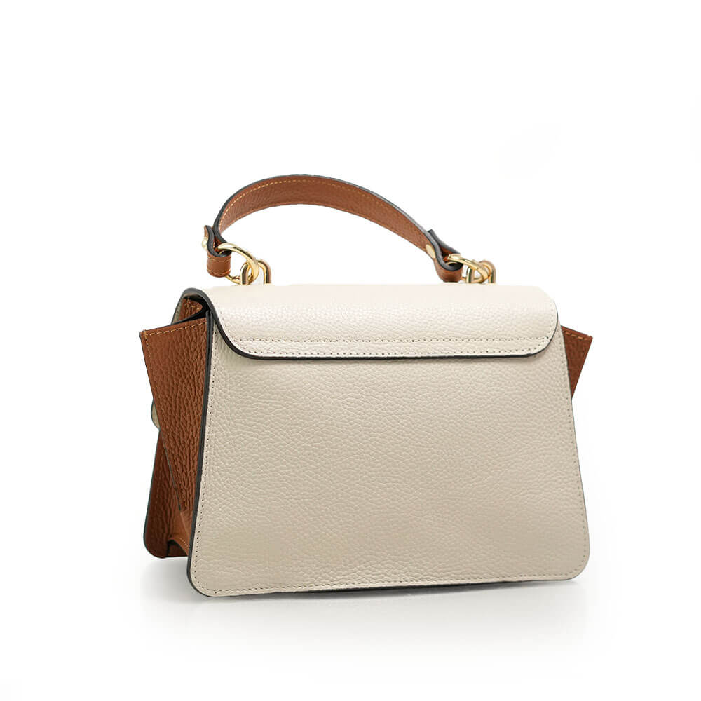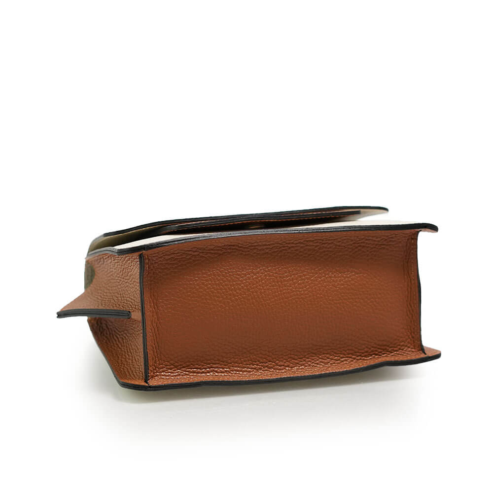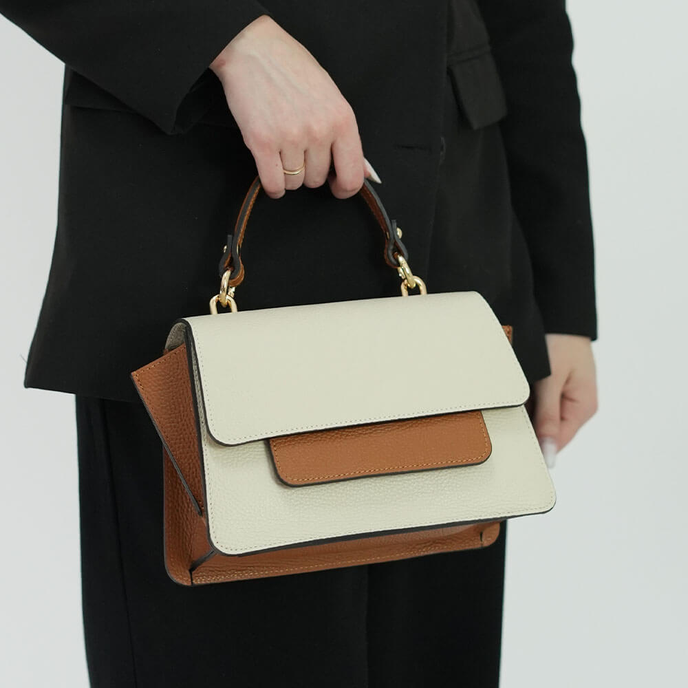 Geanta este prevazuta cu o curea din piele pentru a fi purtata in mana sau pe brat si o curea detasabila ce permite purtarea pe umar