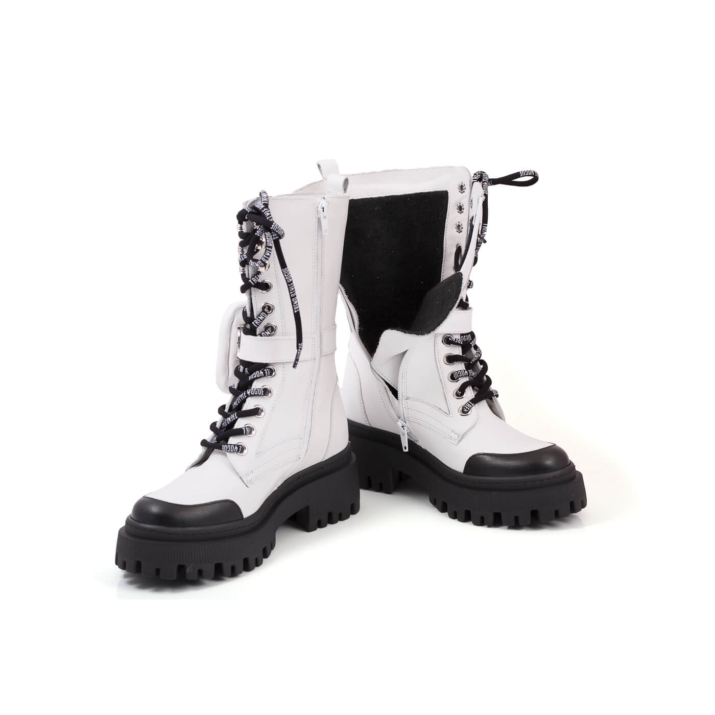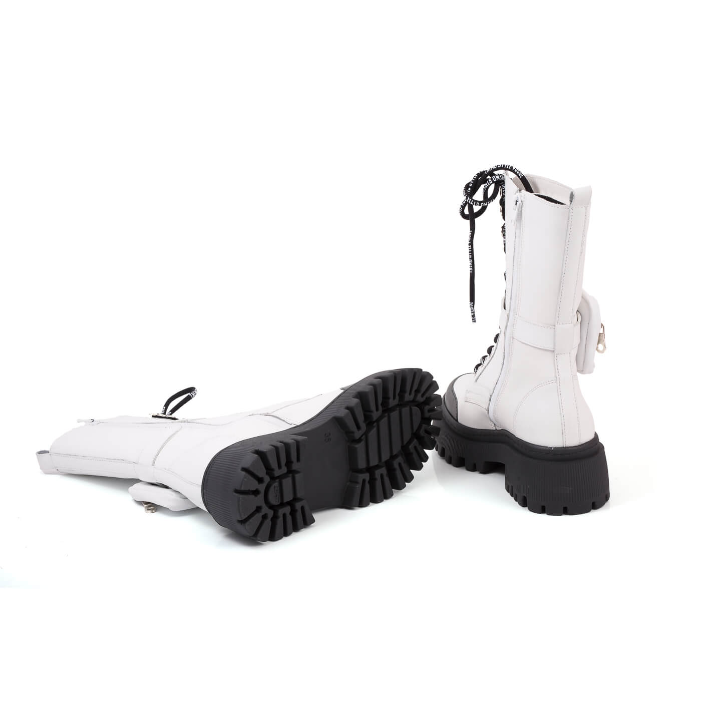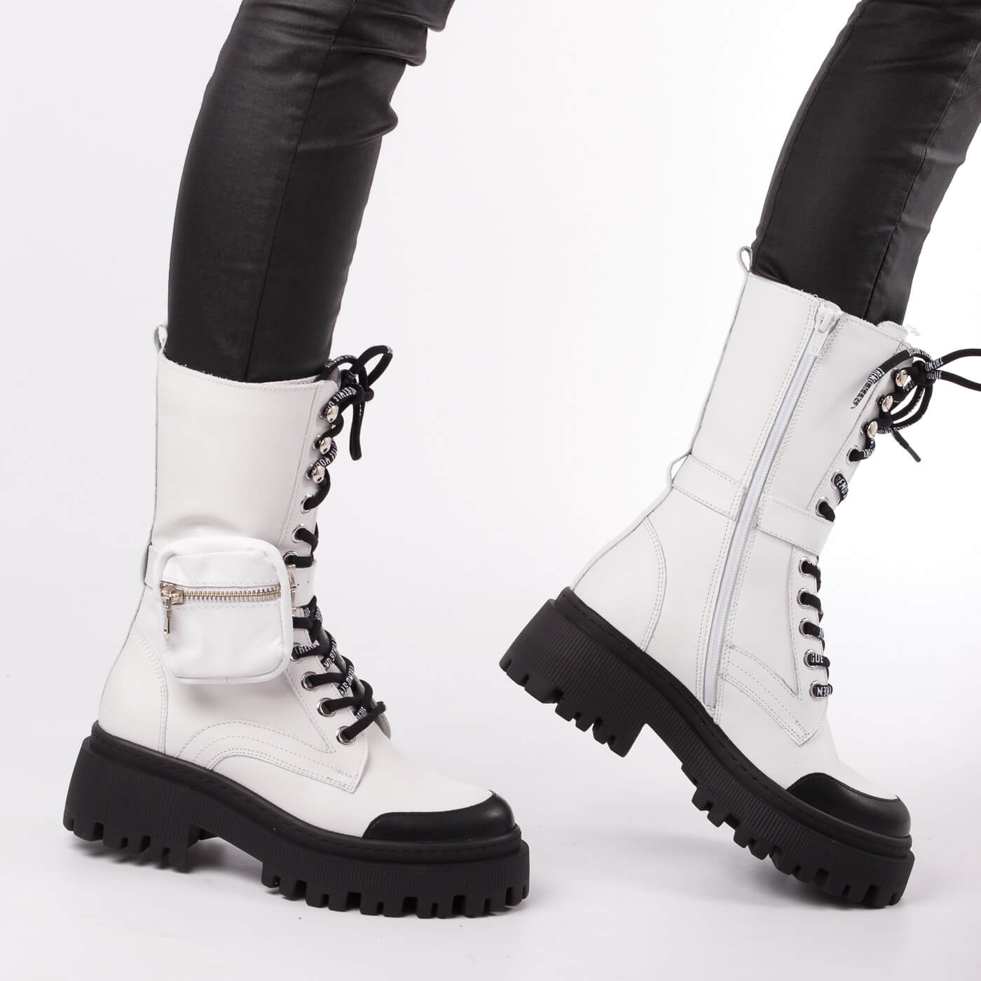 Ghete dama din piele naturala, siret reglabil, portofel si bareta detasabile.