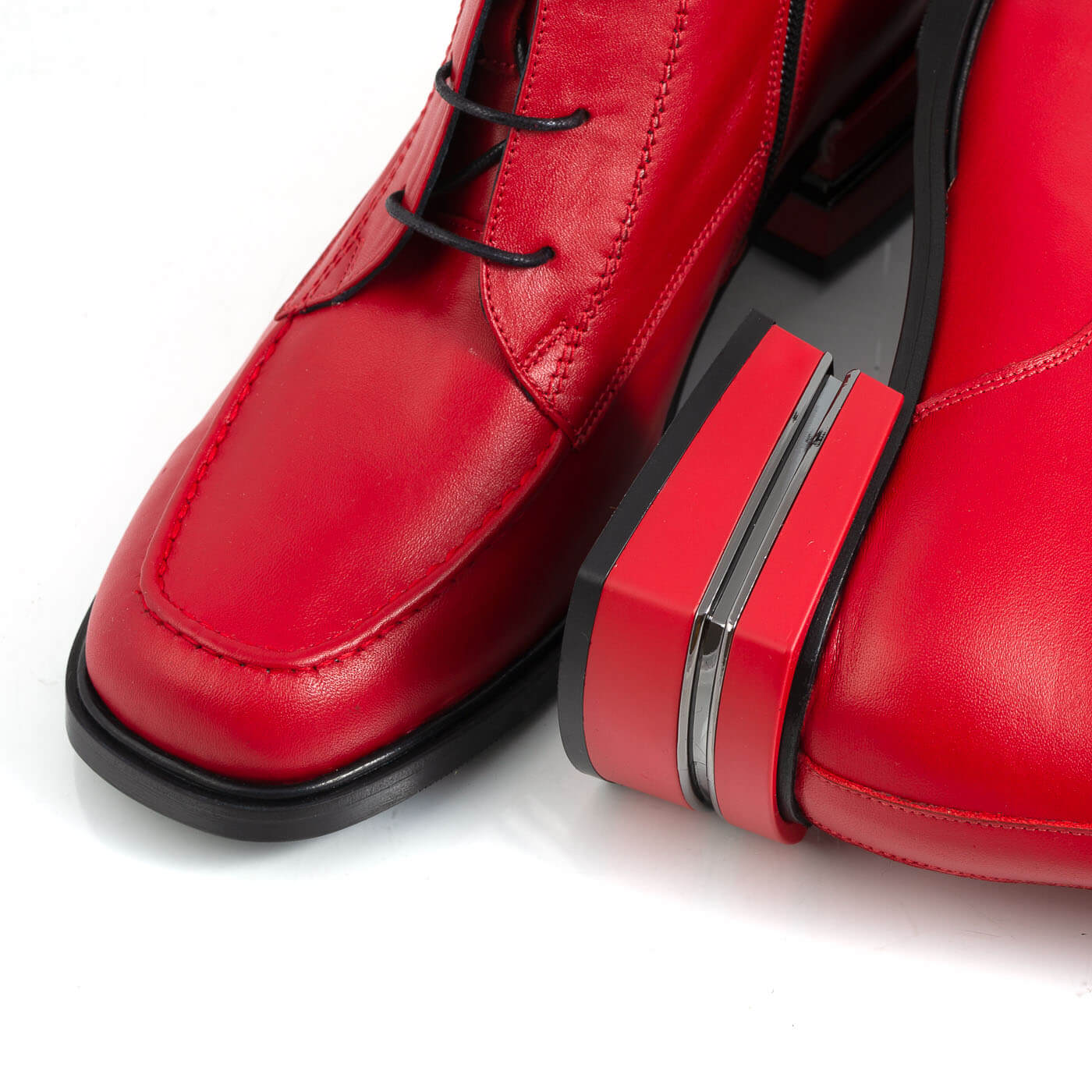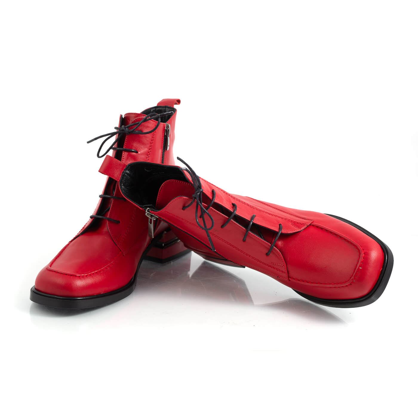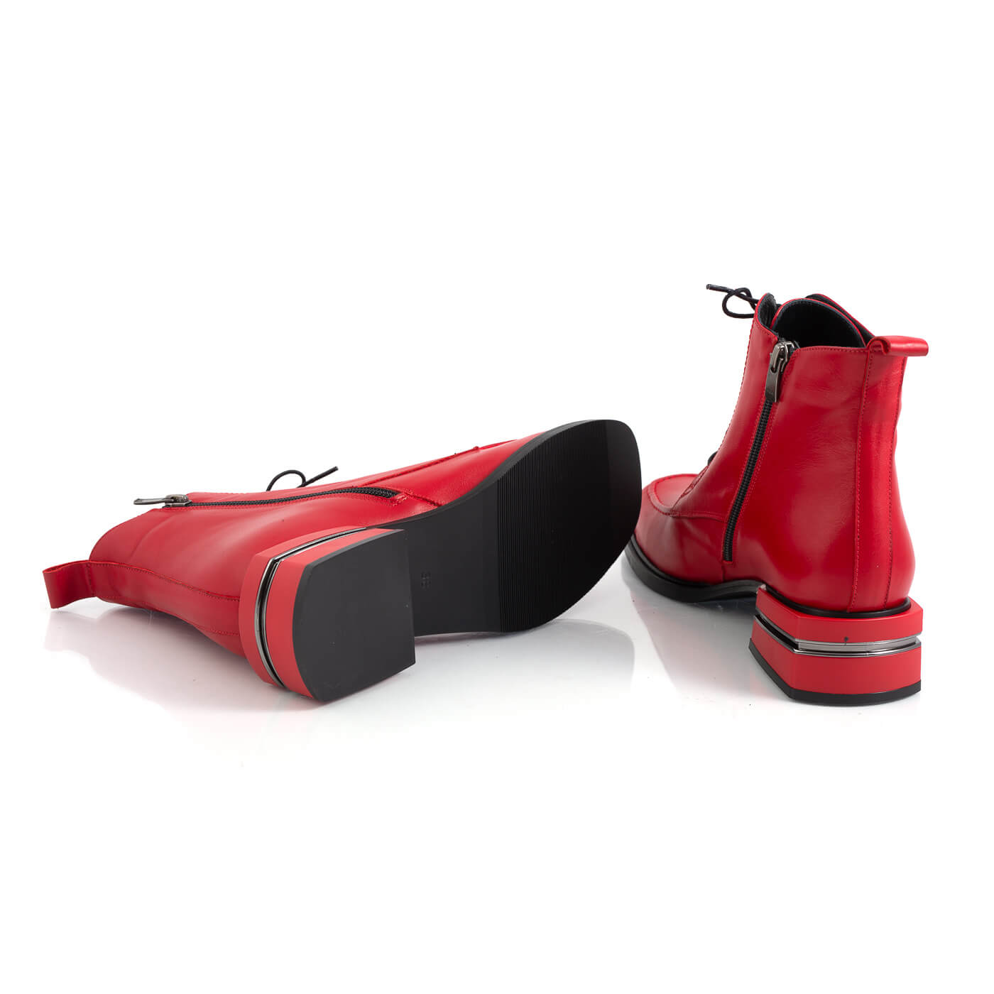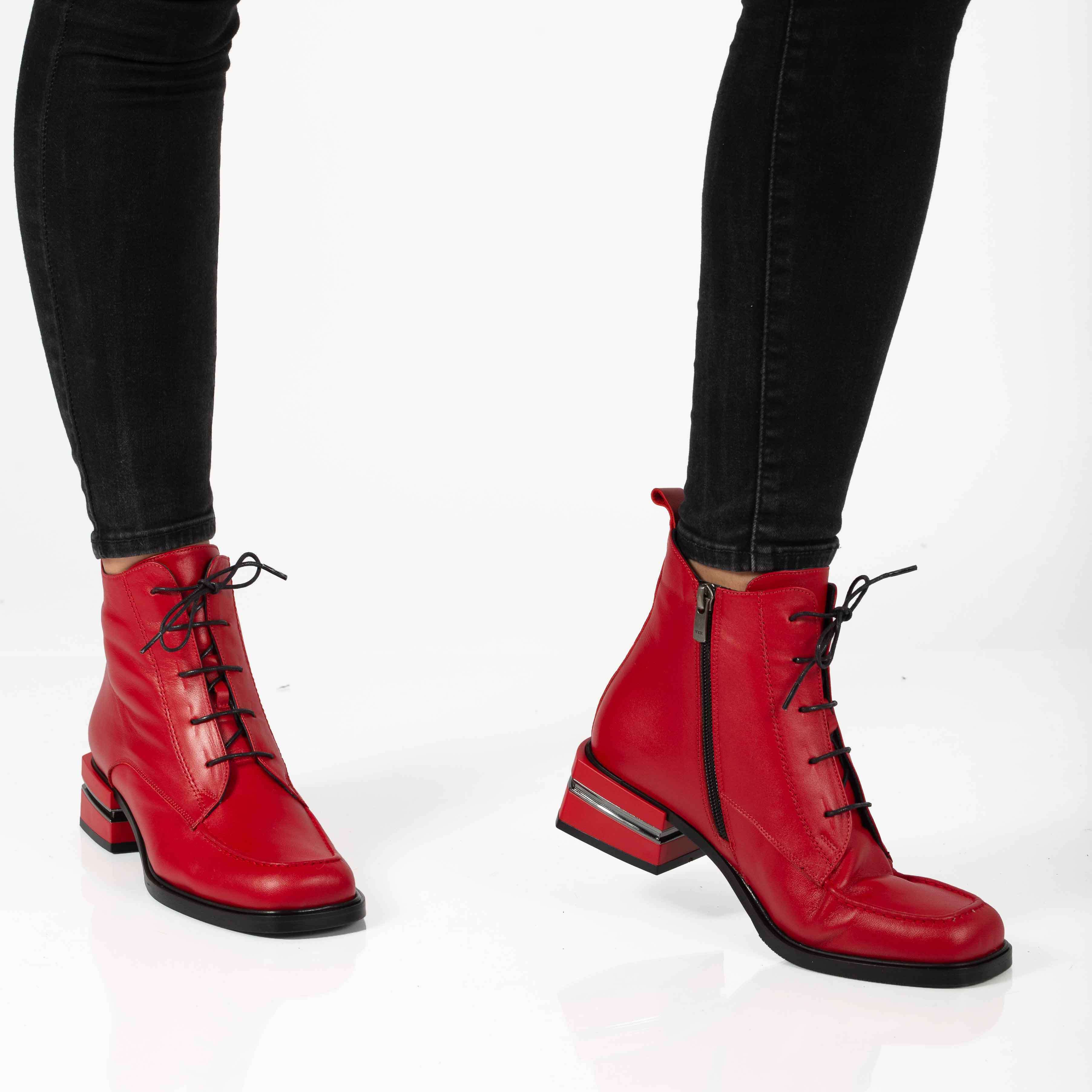 Ghete dama din piele naturala cu siret si fermoar