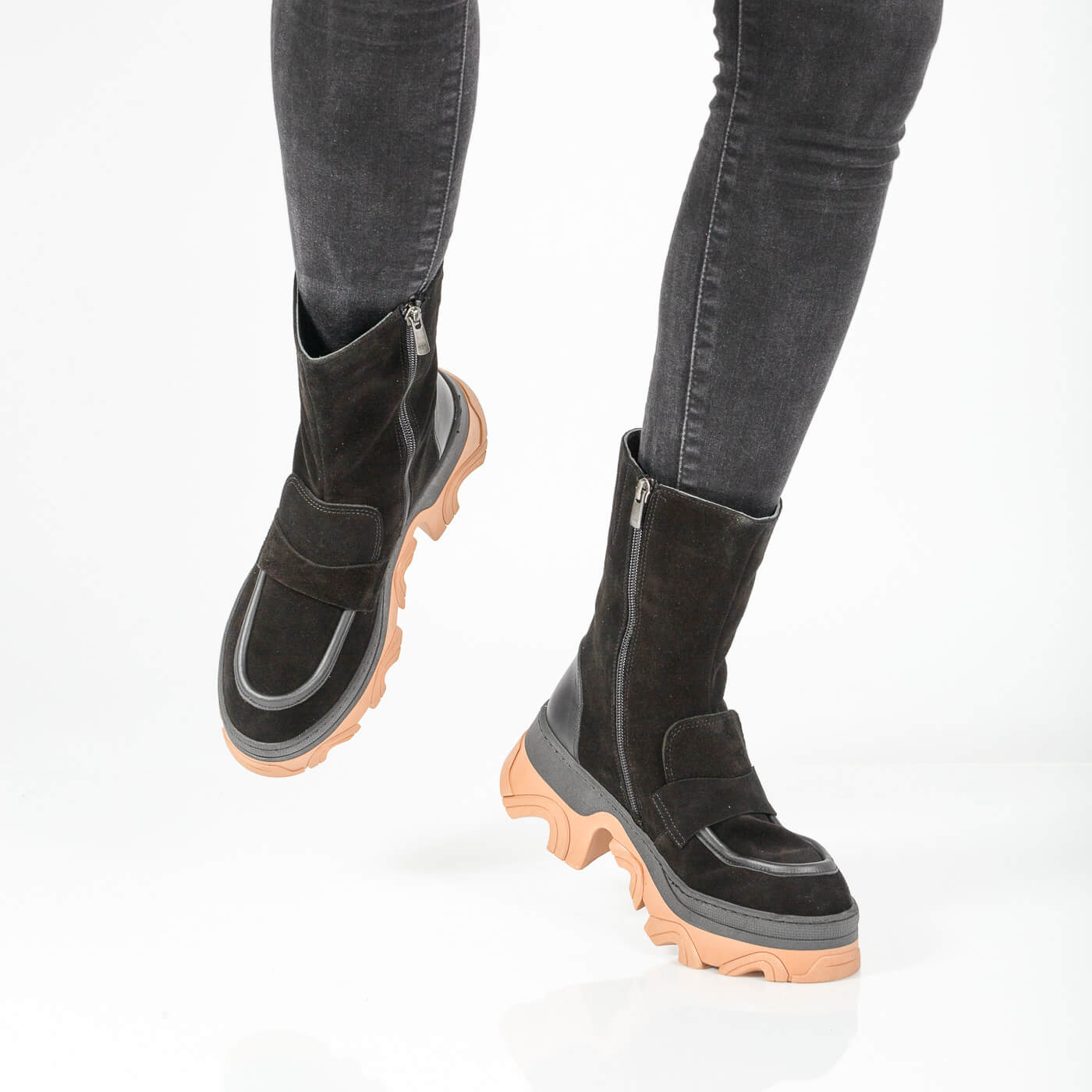 Ghete dama din piele naturala cu fermoar