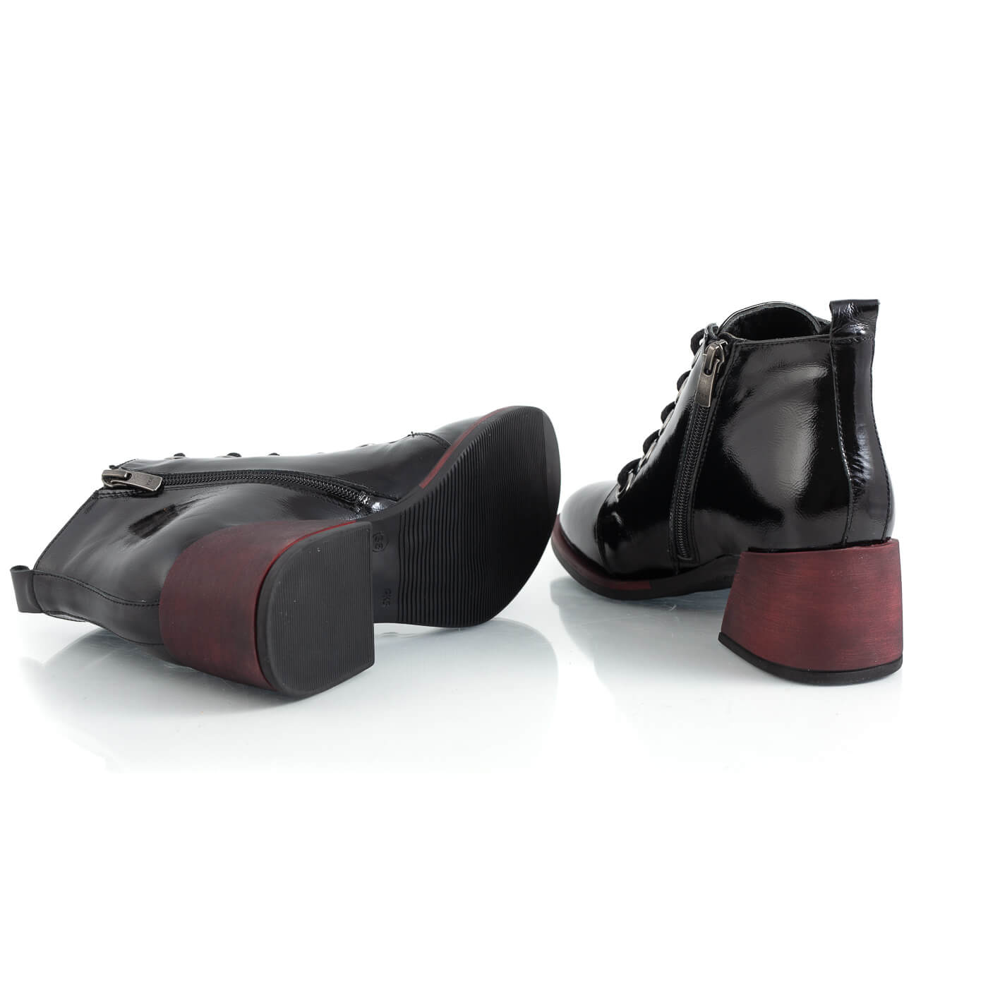 Ghete din piele naturala cu siret si fermoar