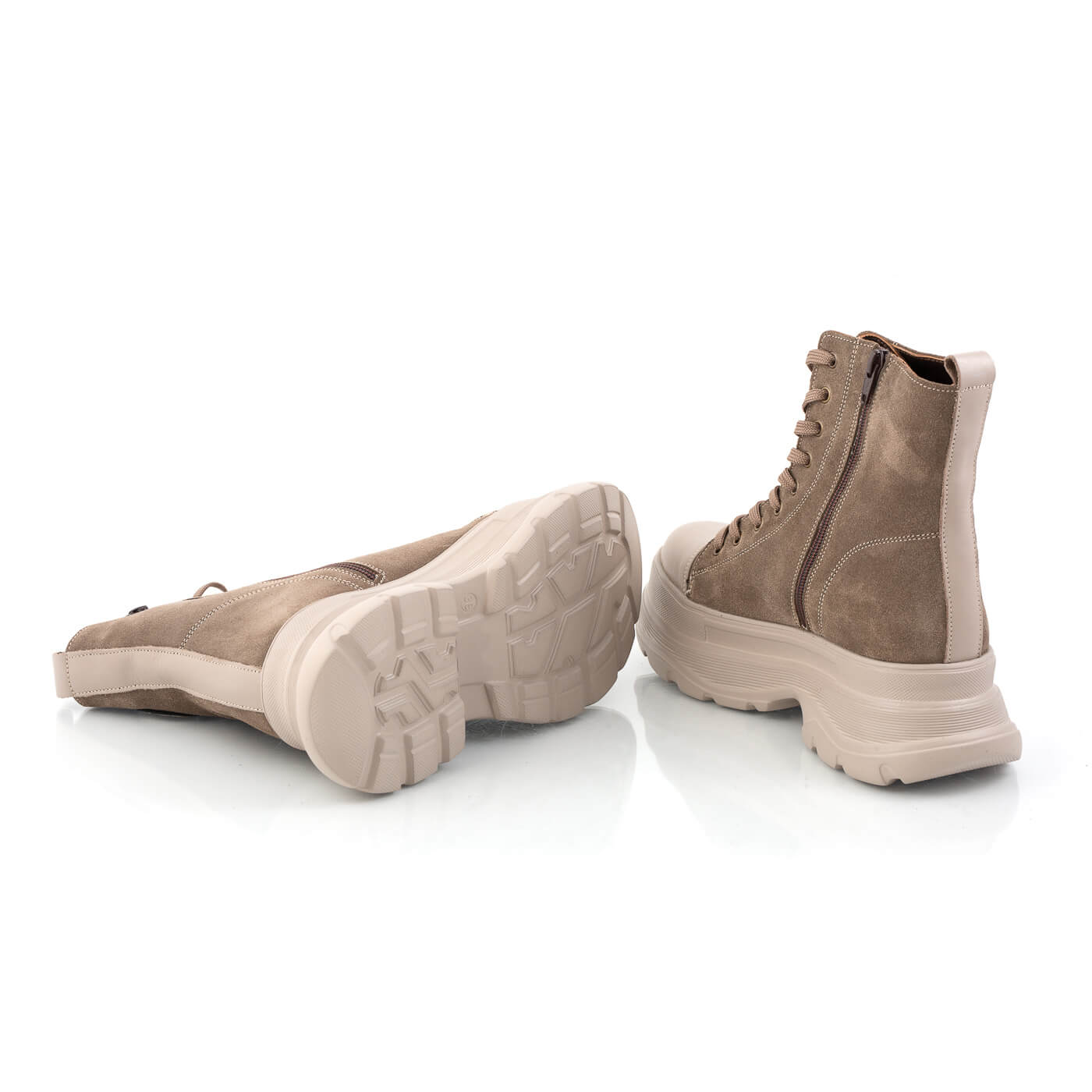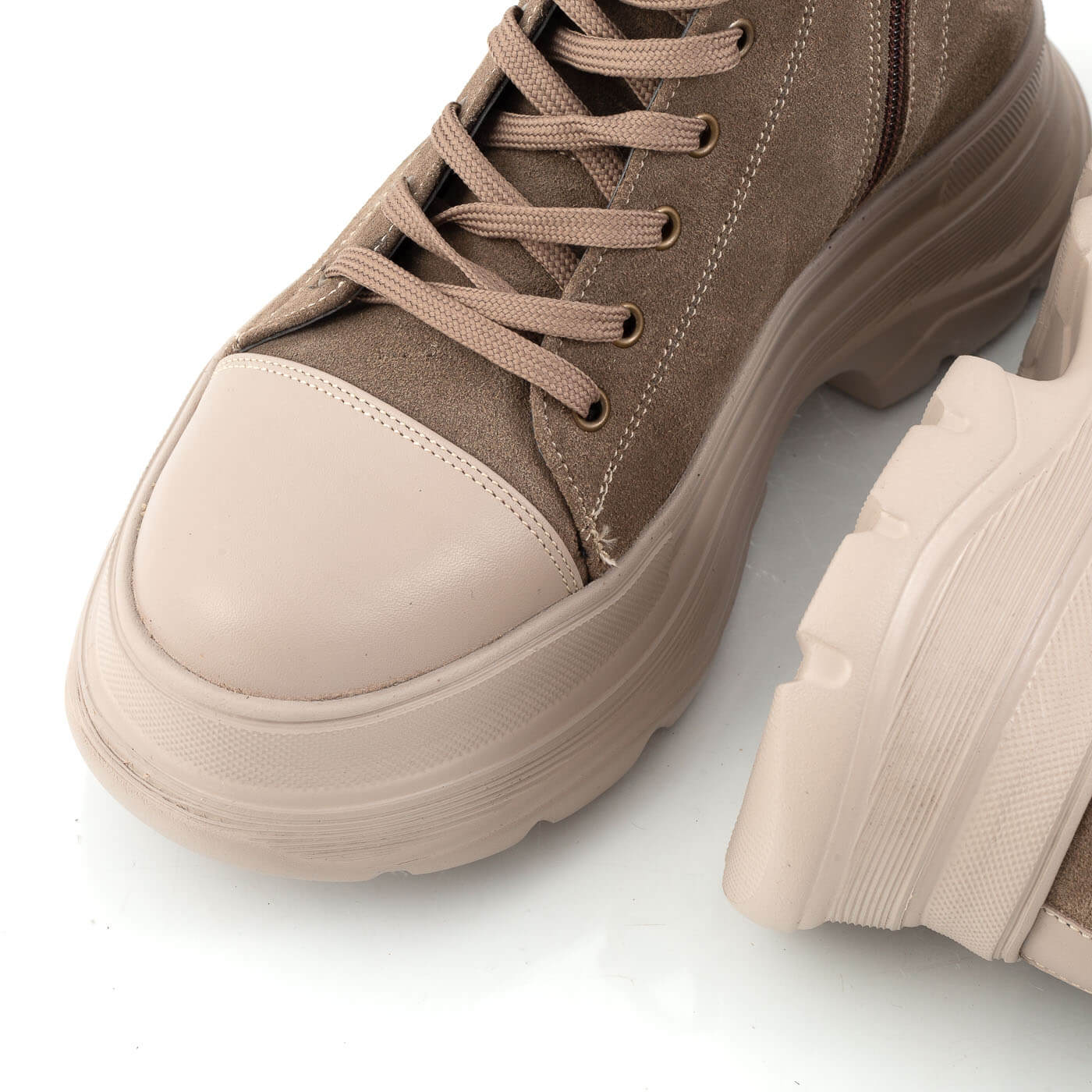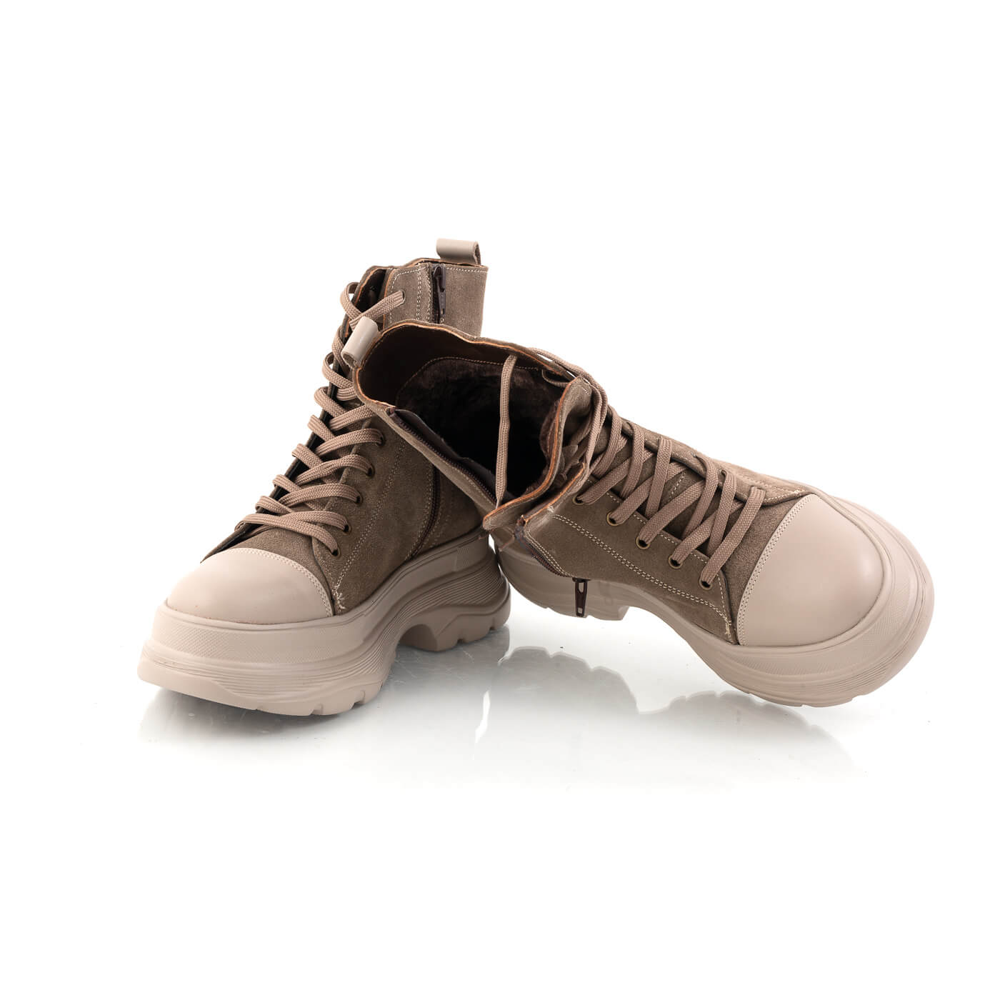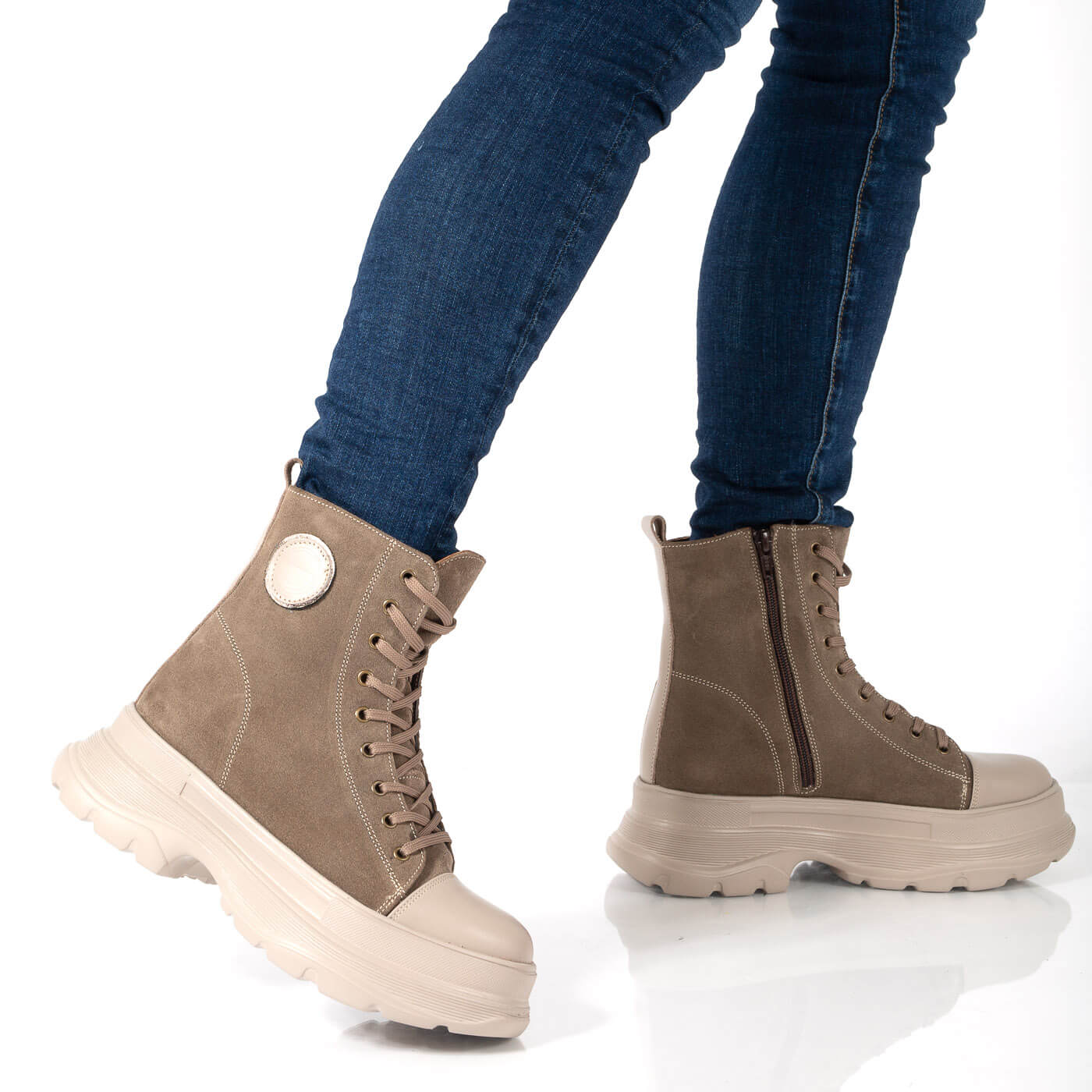 Ghete dama din piele naturala cu siret si fermoar