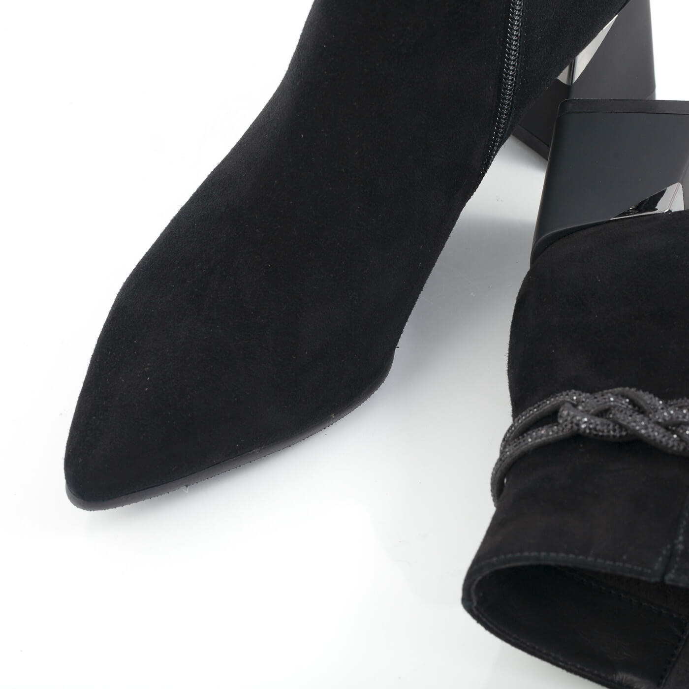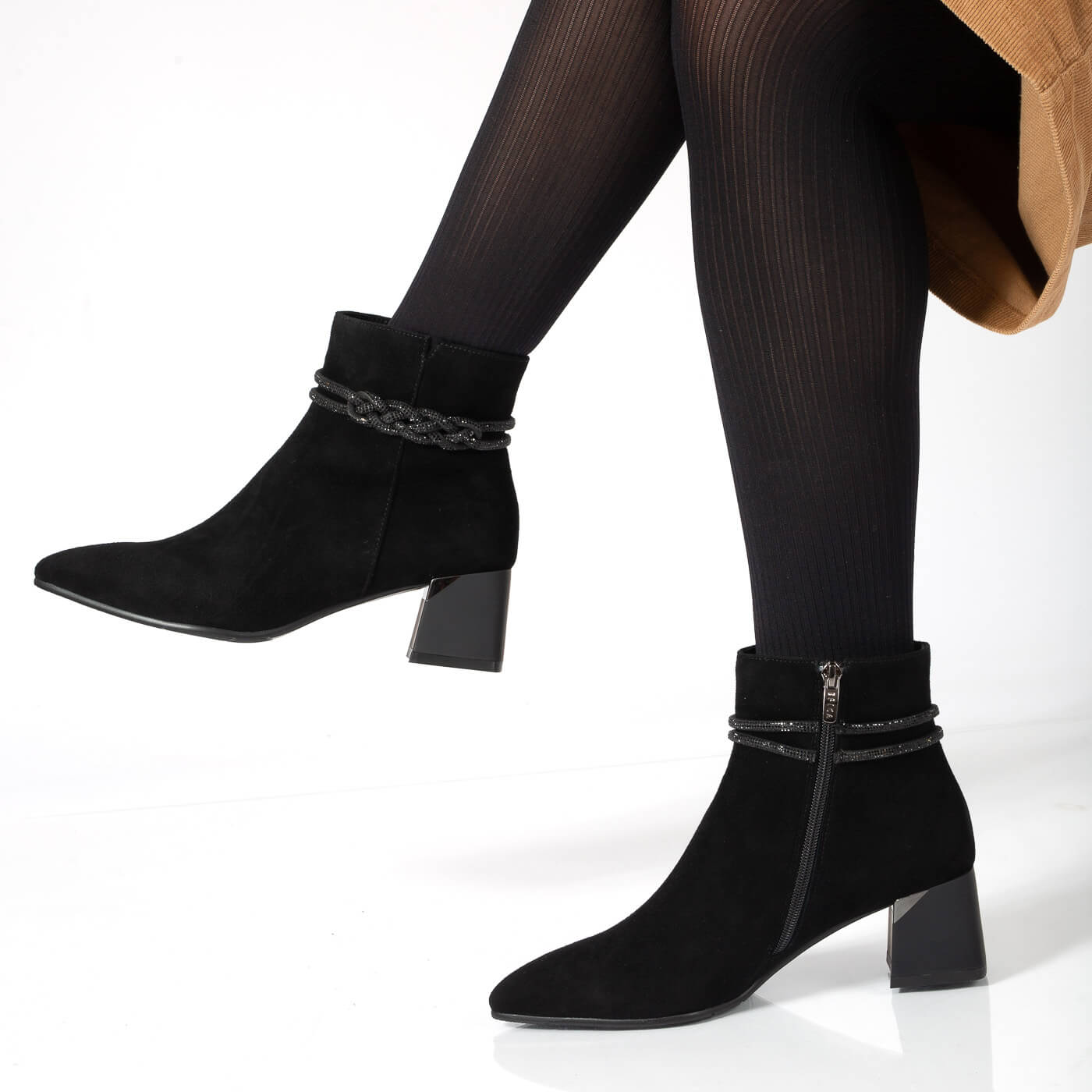 Ghete dama din piele naturala cu fermoar si accesoriu la glezna