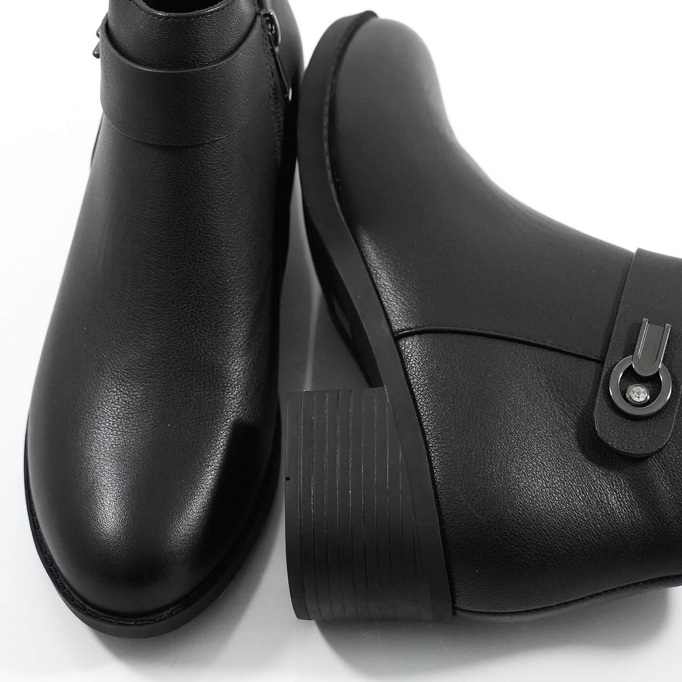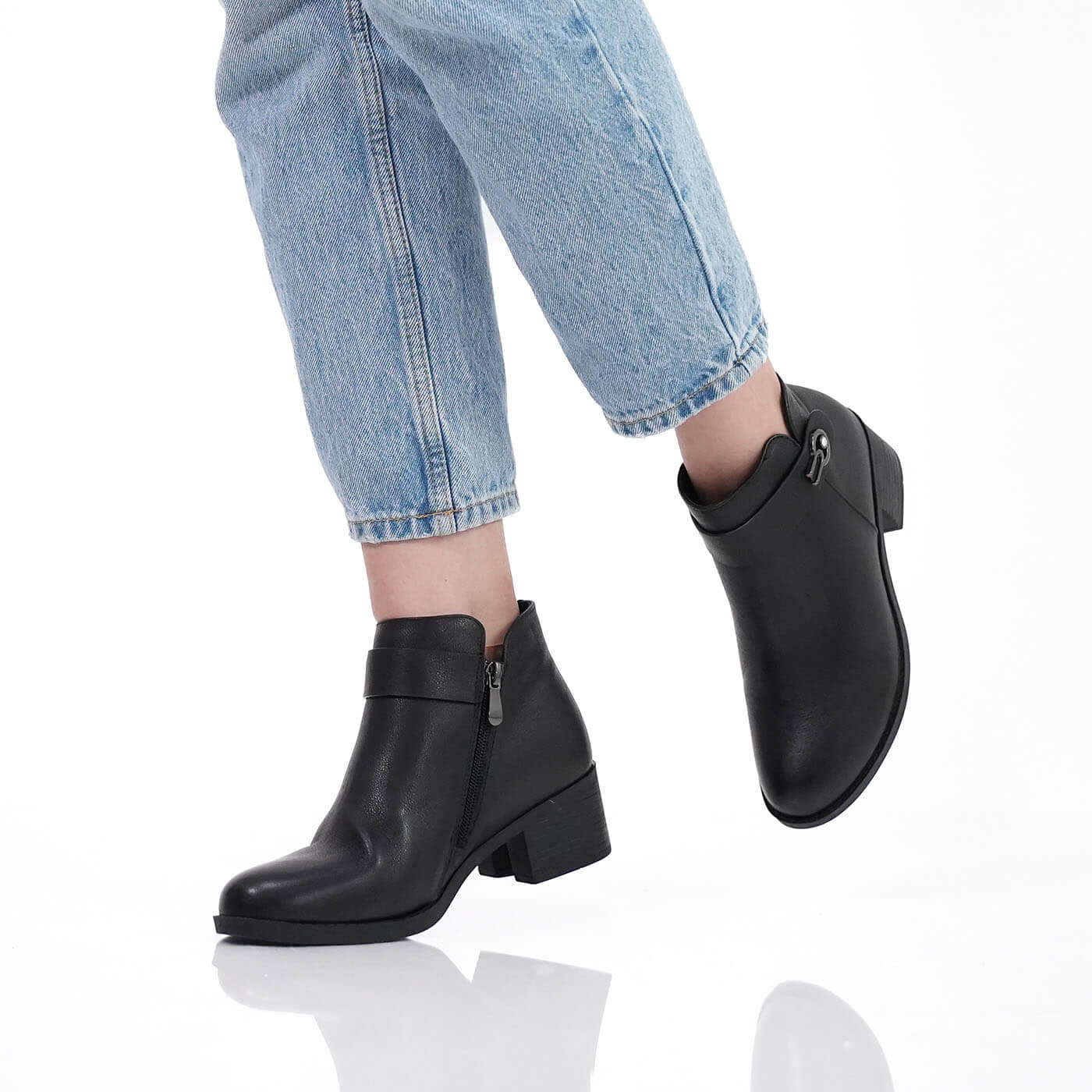 Ghete dama din piele naturala cu fermoar si catarama la glezna