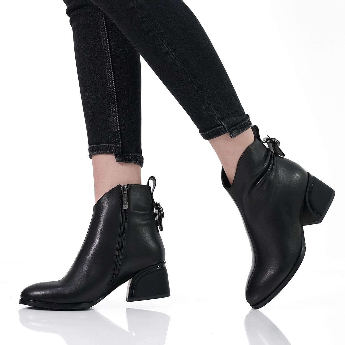 Ghete dama din piele naturala cu fermoar