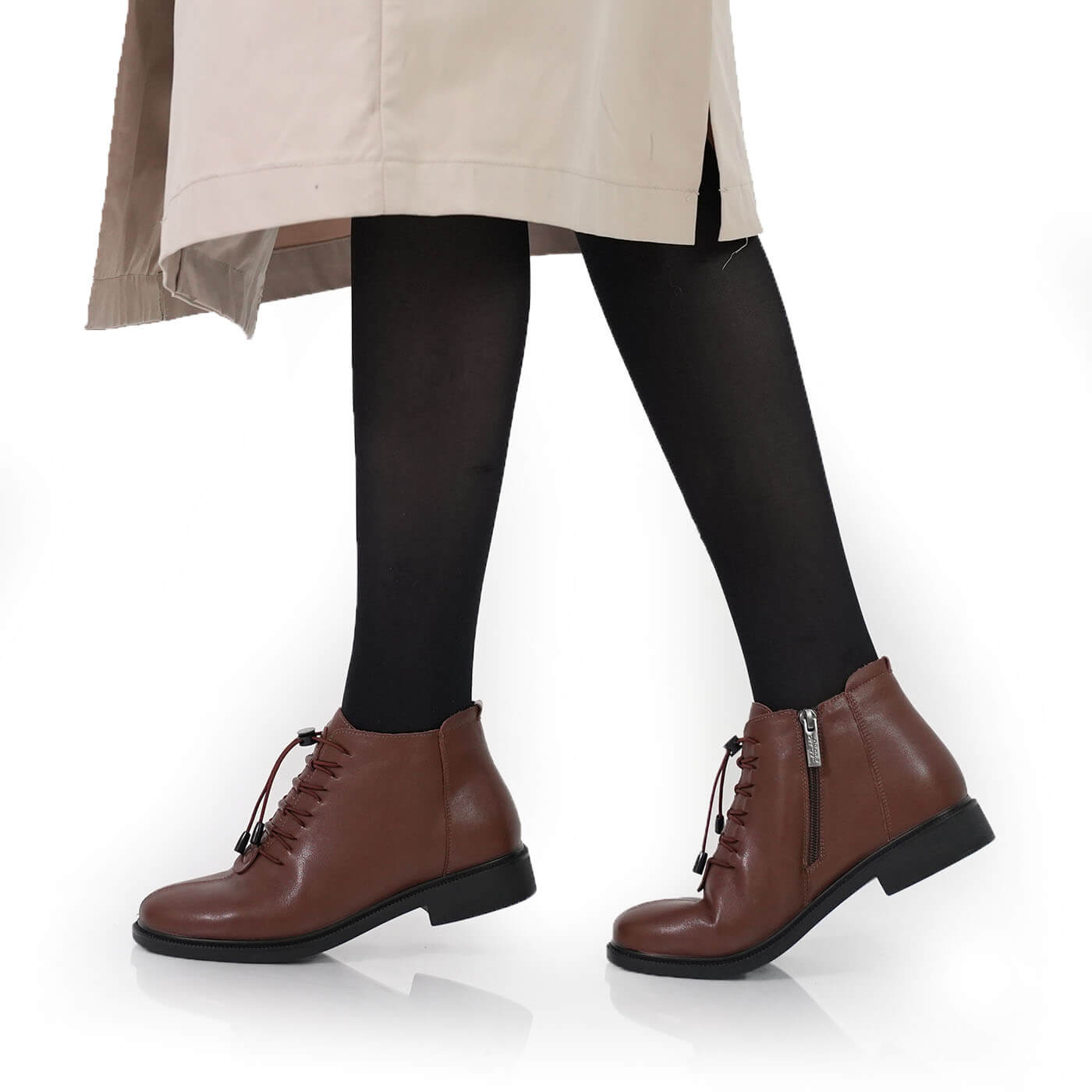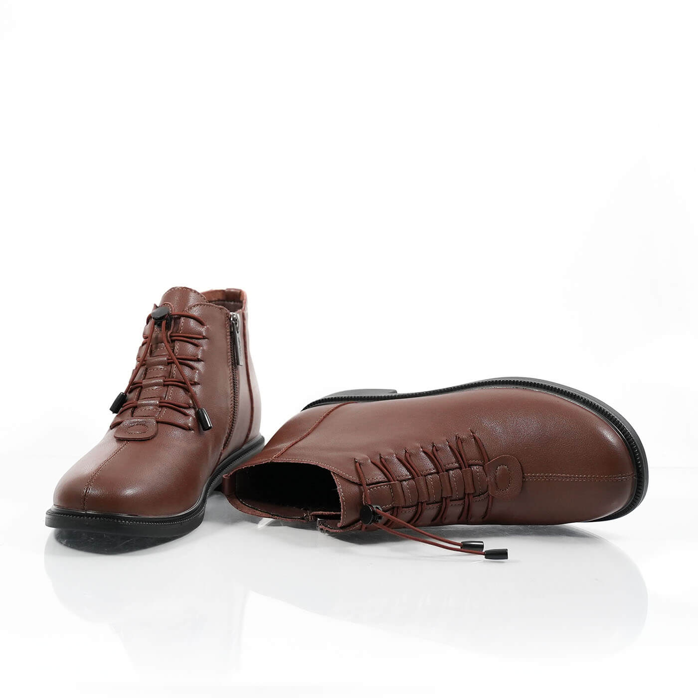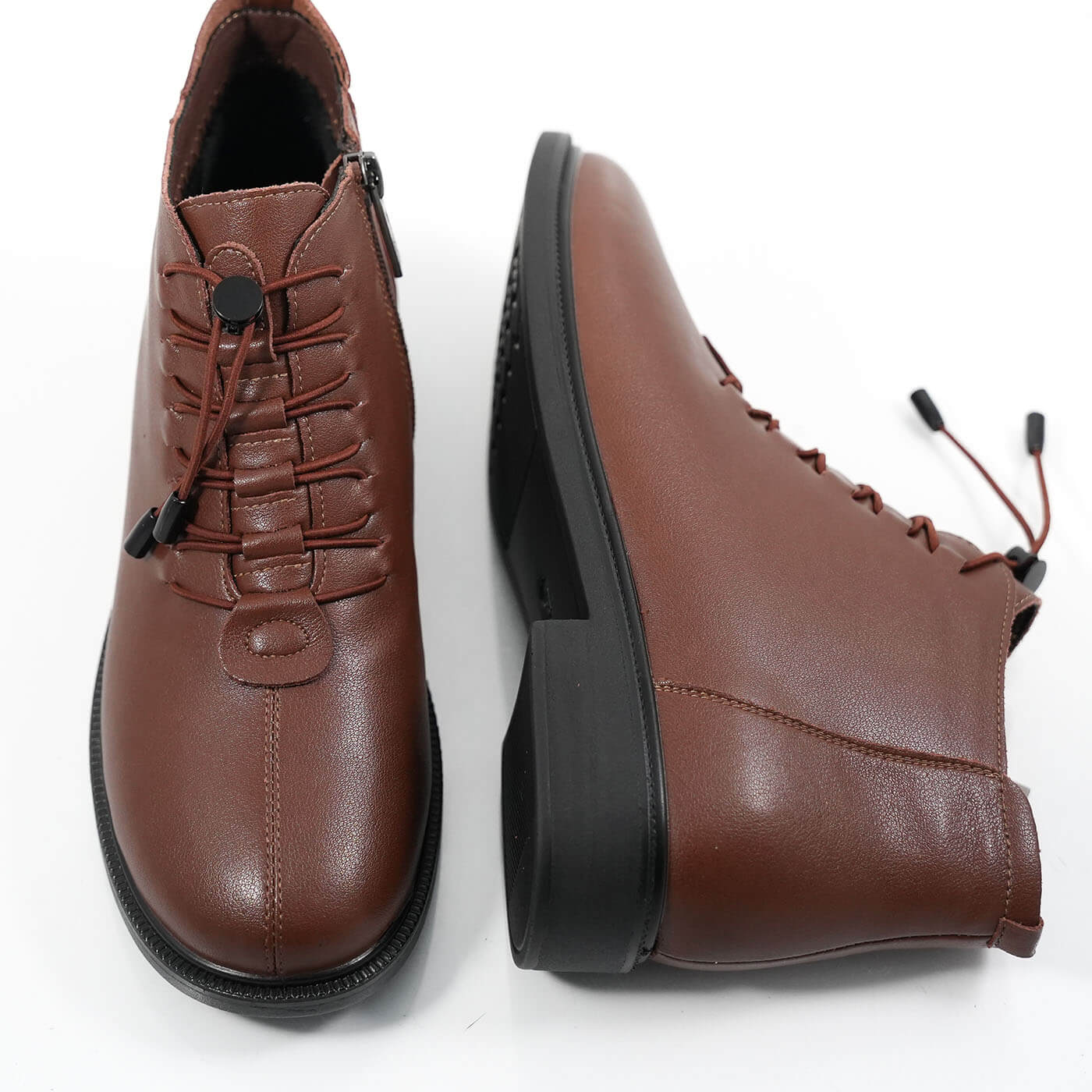 Ghete dama din piele naturala cu siret si fermoar