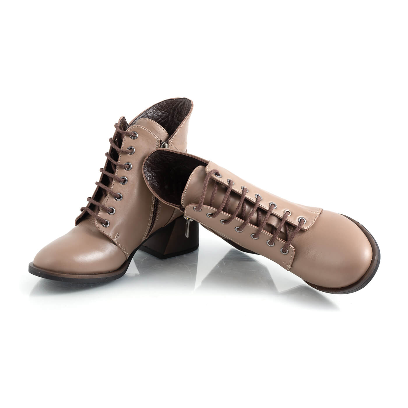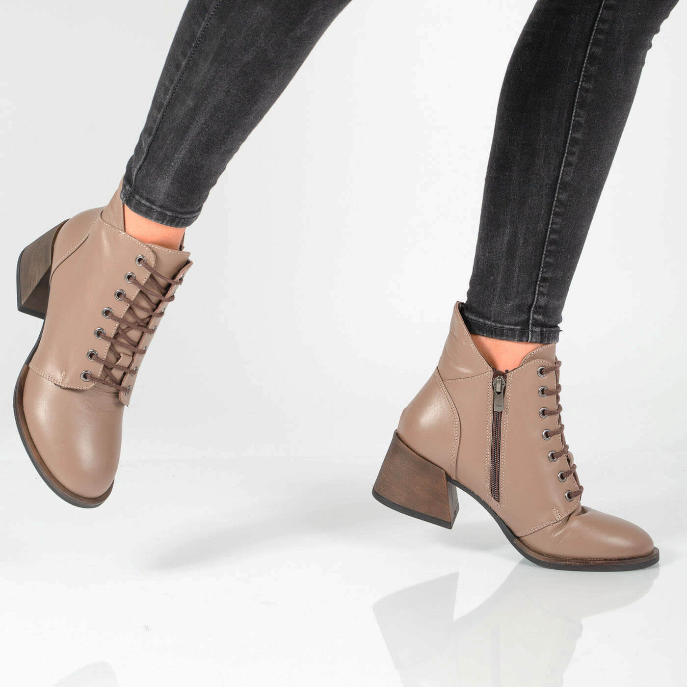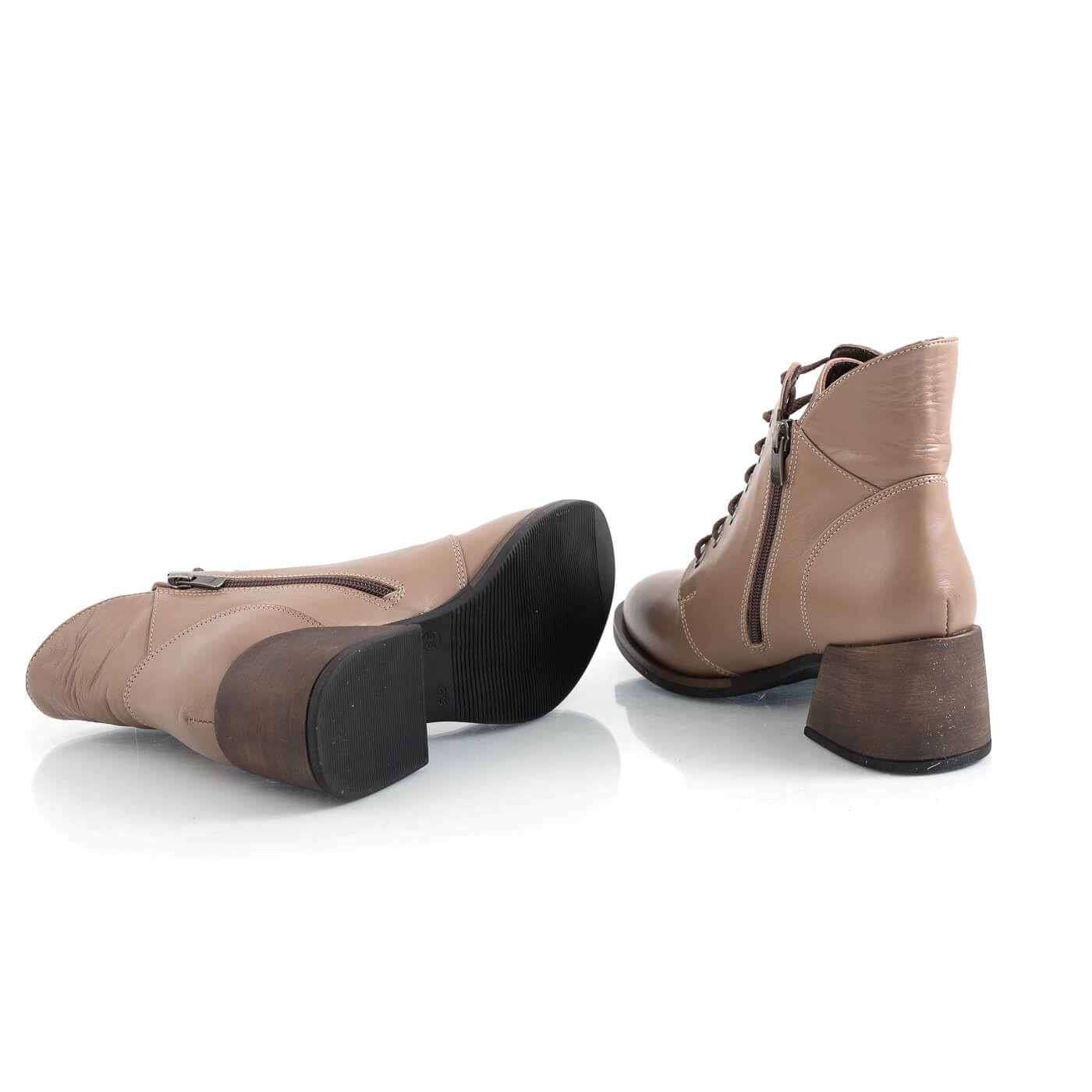 Ghete din piele naturala cu siret si fermoar
