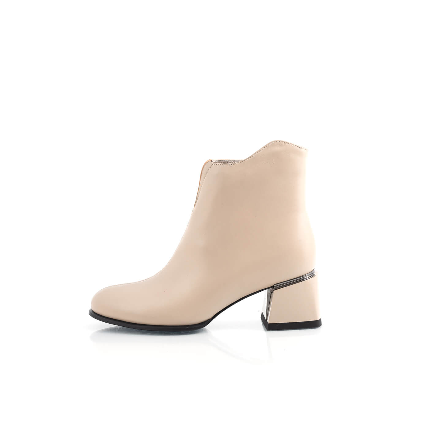 Ghete dama din piele naturala cu siret, fermoar si toc bej