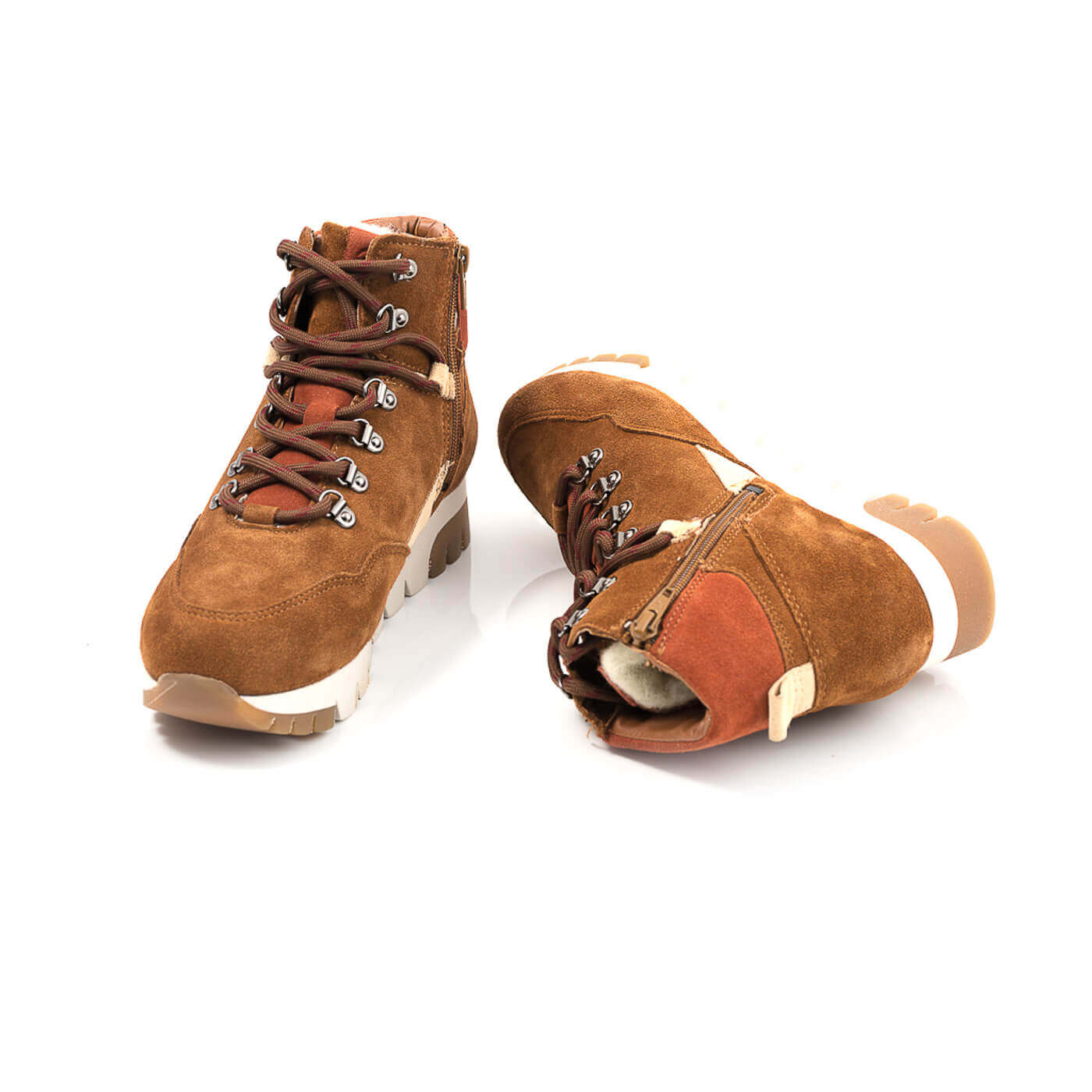 Ghete din piele naturala cu siret si fermoar.