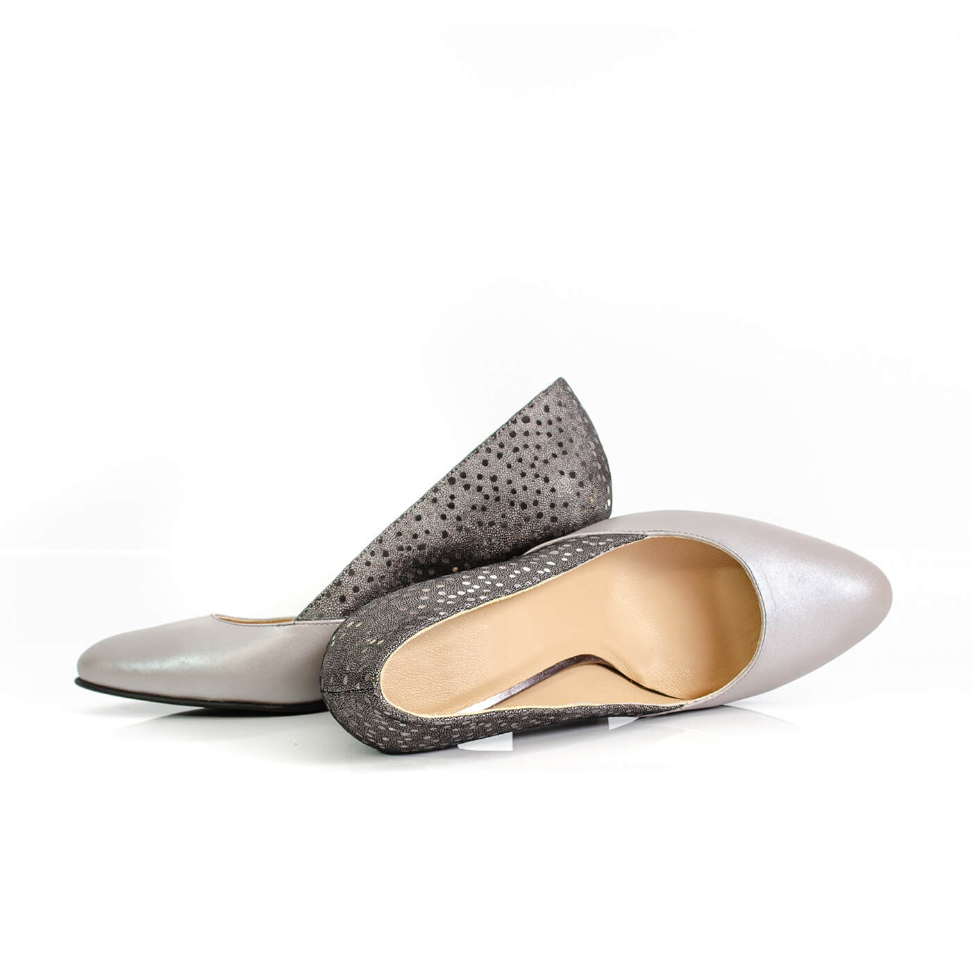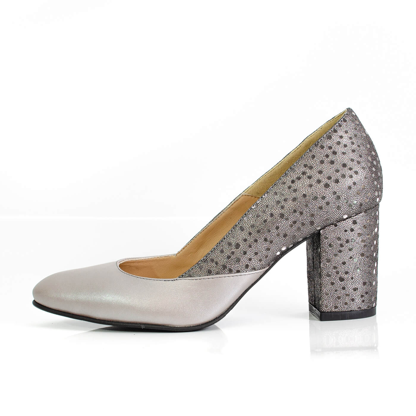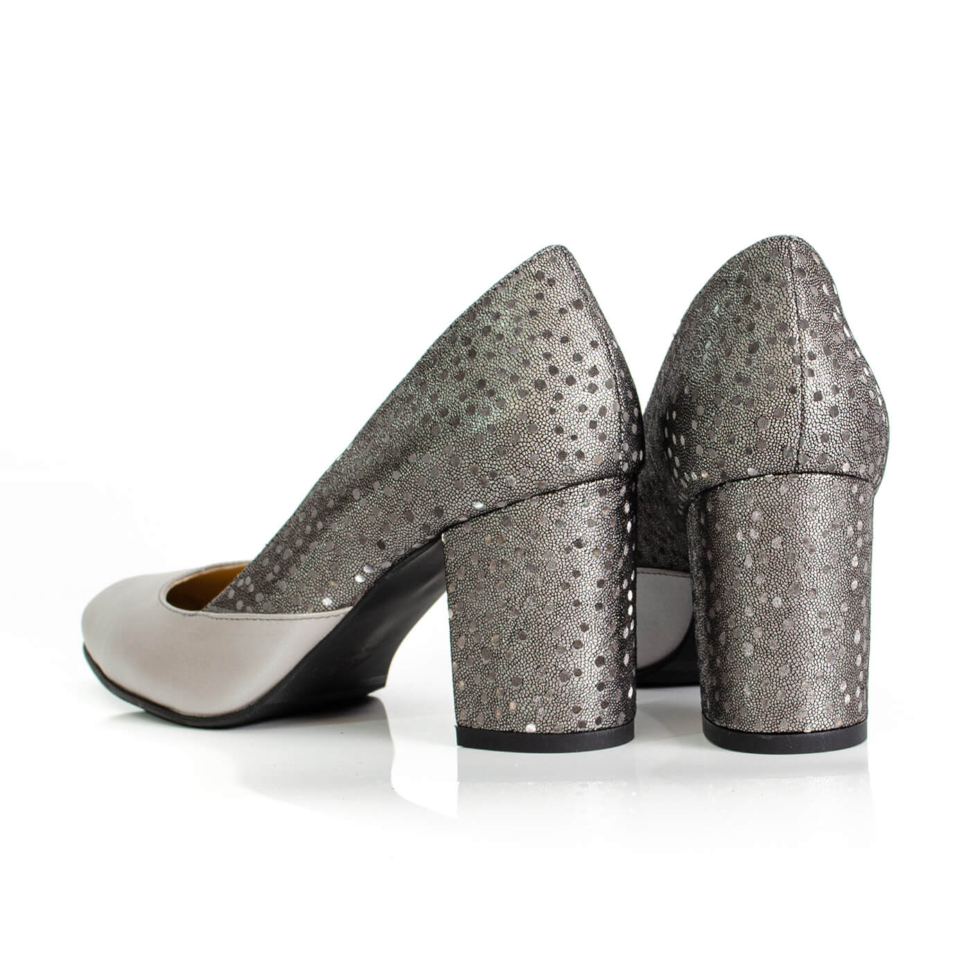 Pantofi cu imprimeu pe toc din piele naturala.