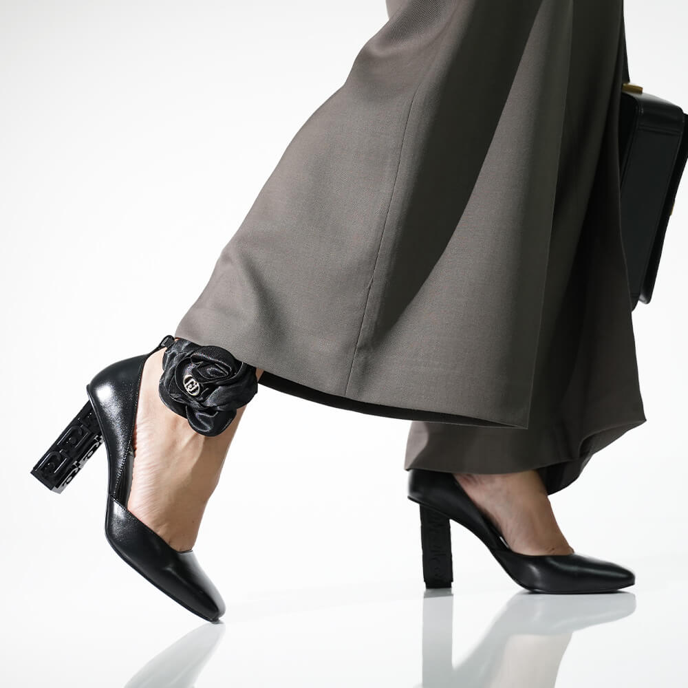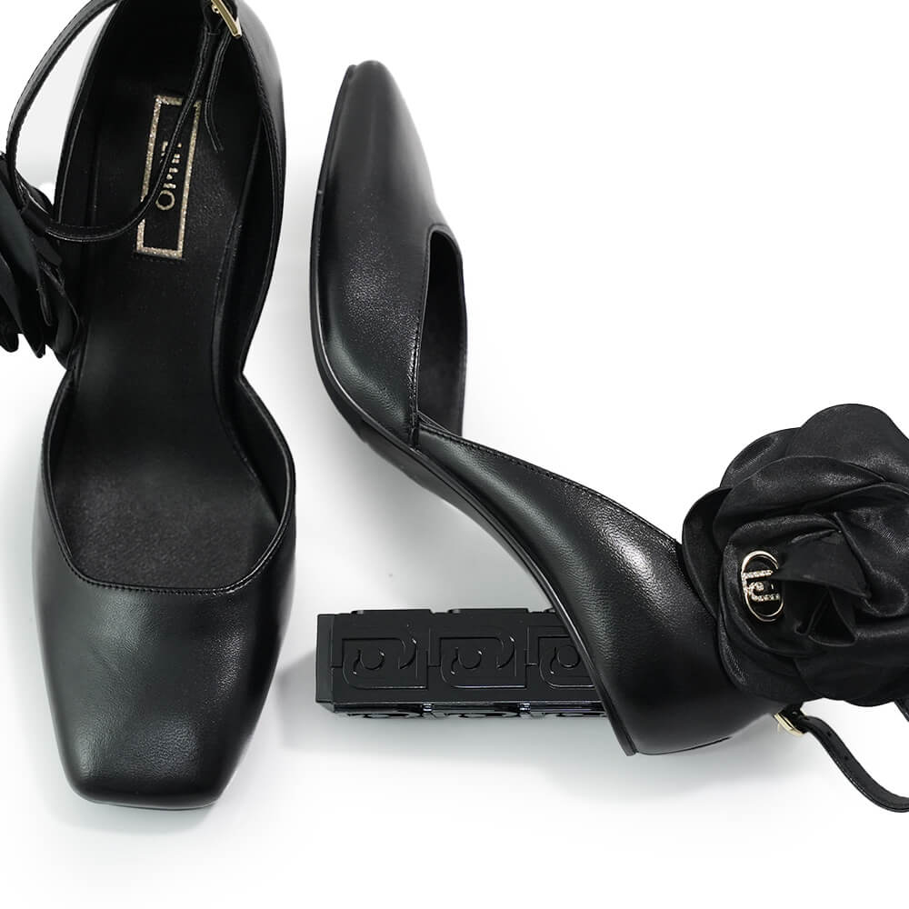 Pantofi eleganti accesorizati cu o floare satinata