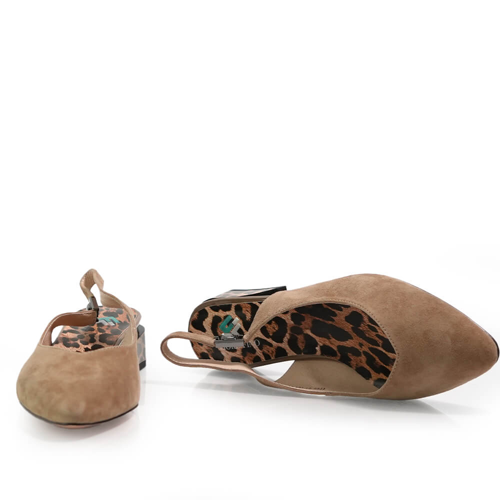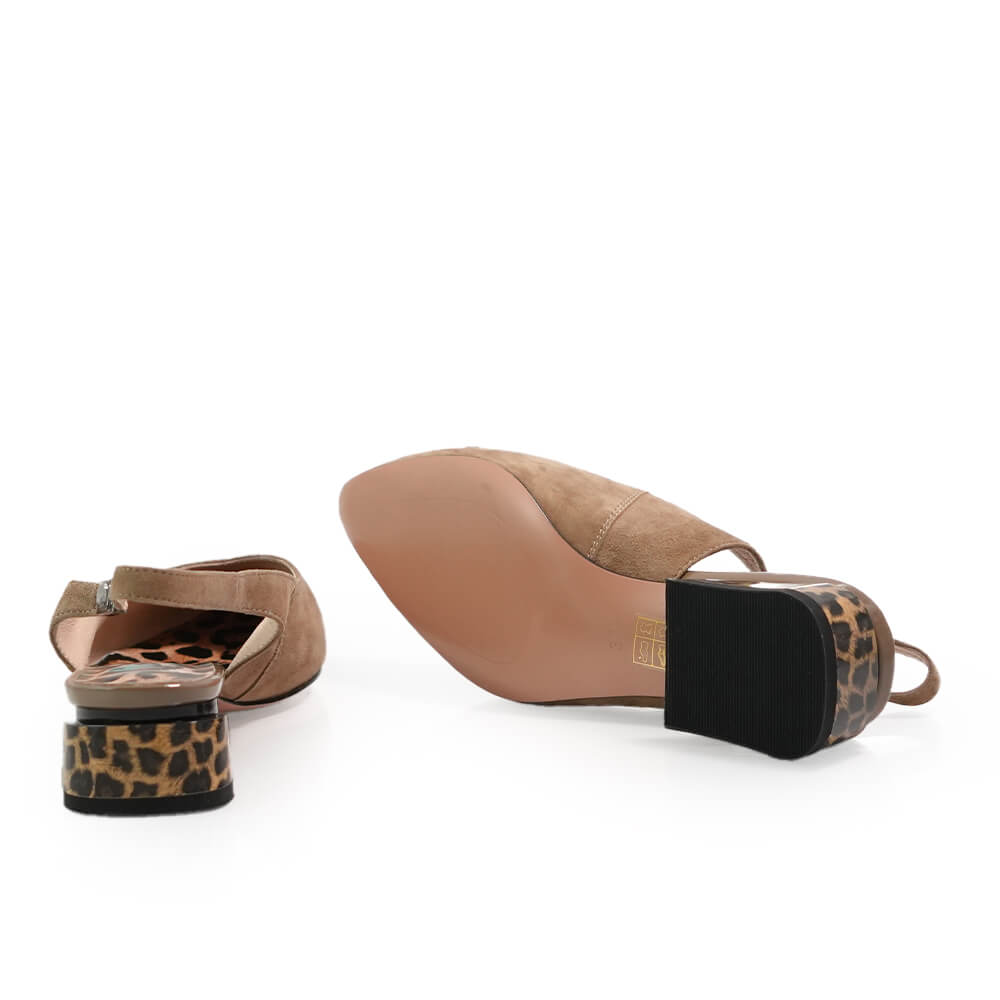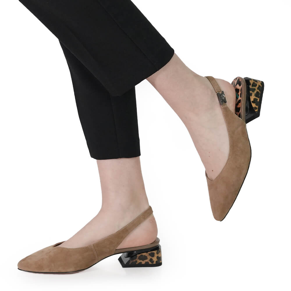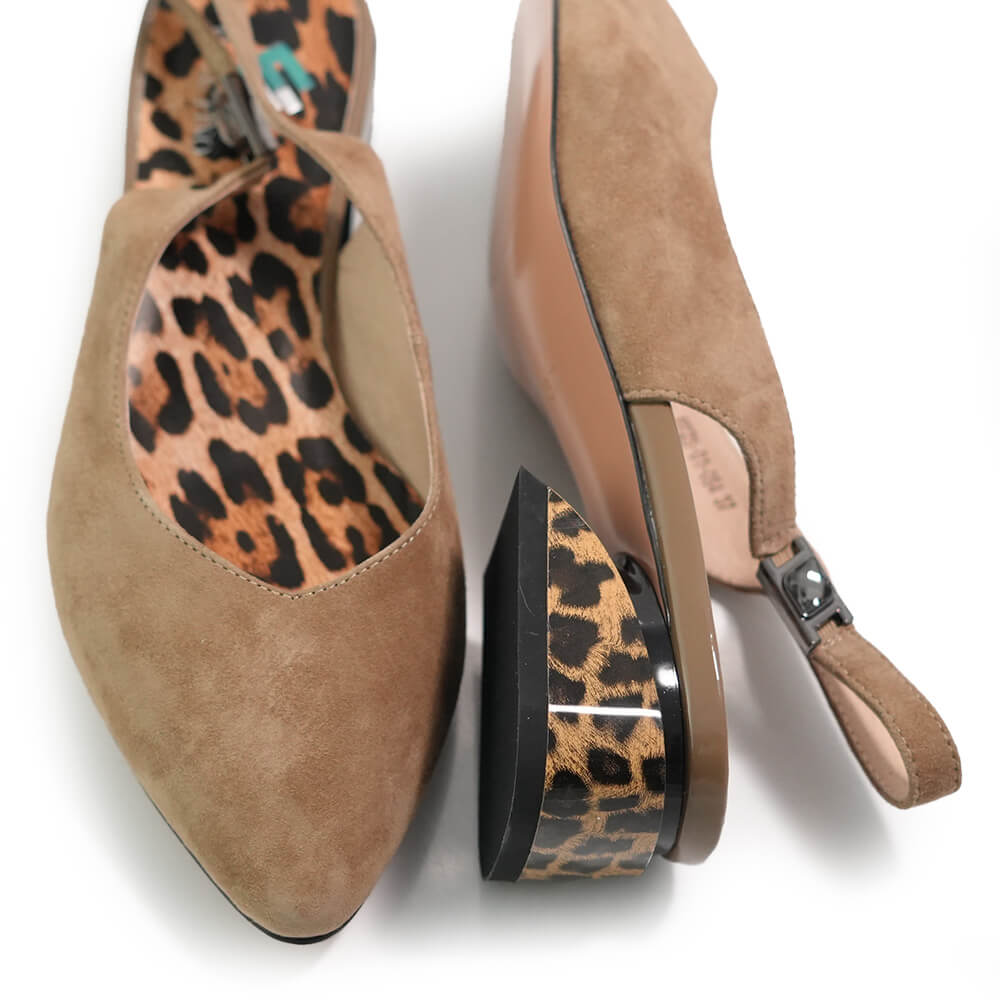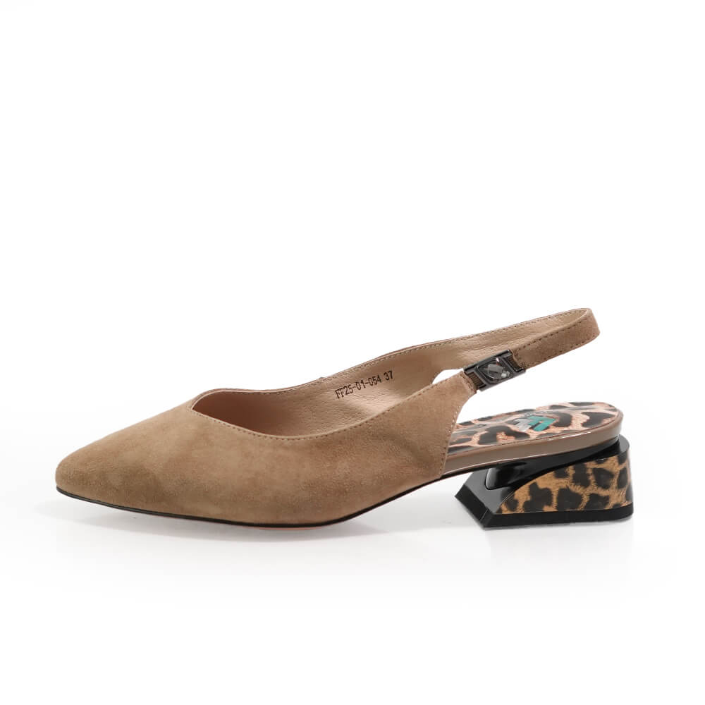 Pantoful are piele moale, potrivindu-se și unui picior lat. În ciuda tocului mai putin înalt, oferă eleganță ținutei.