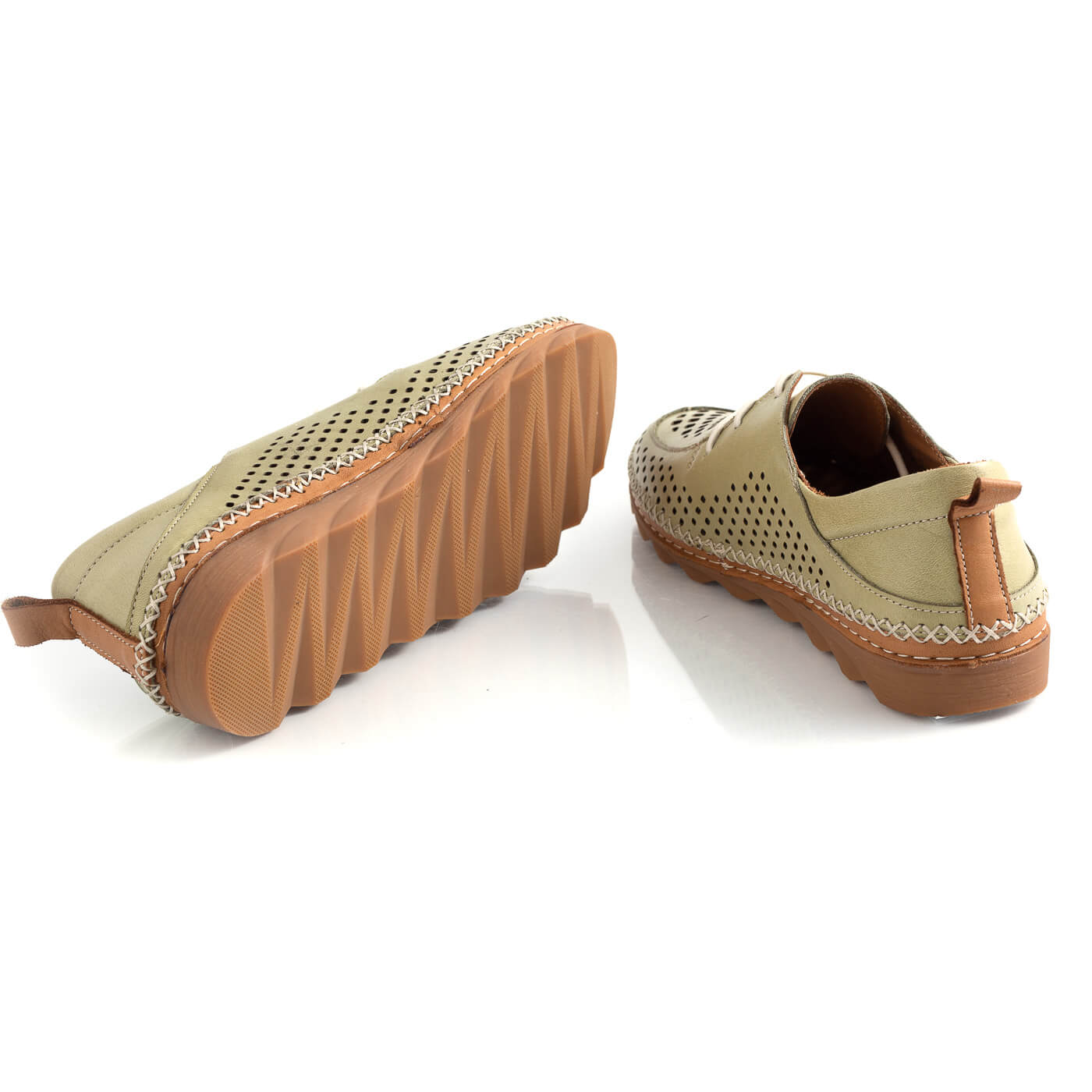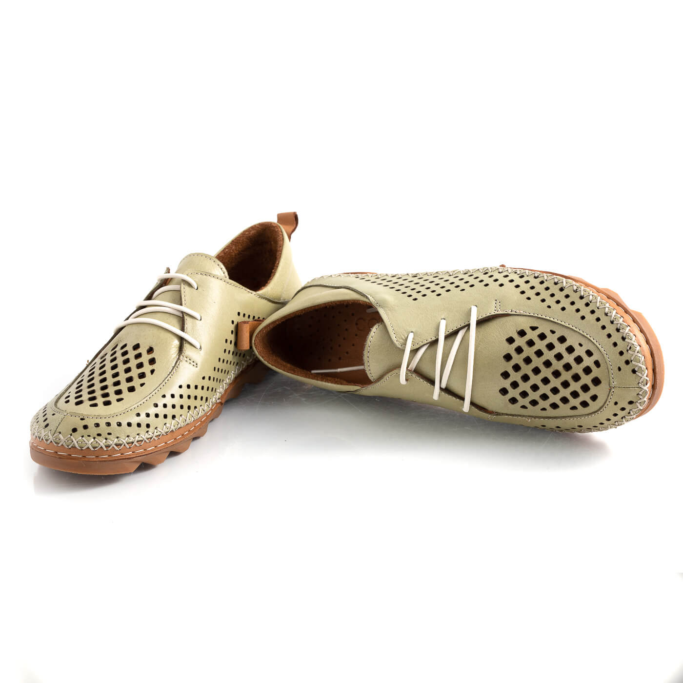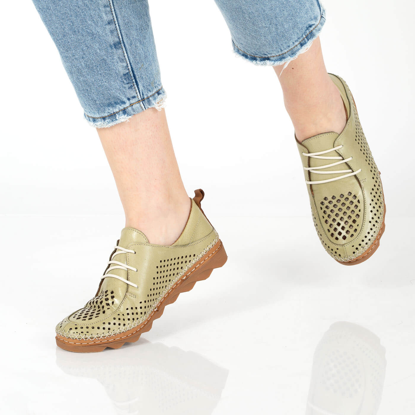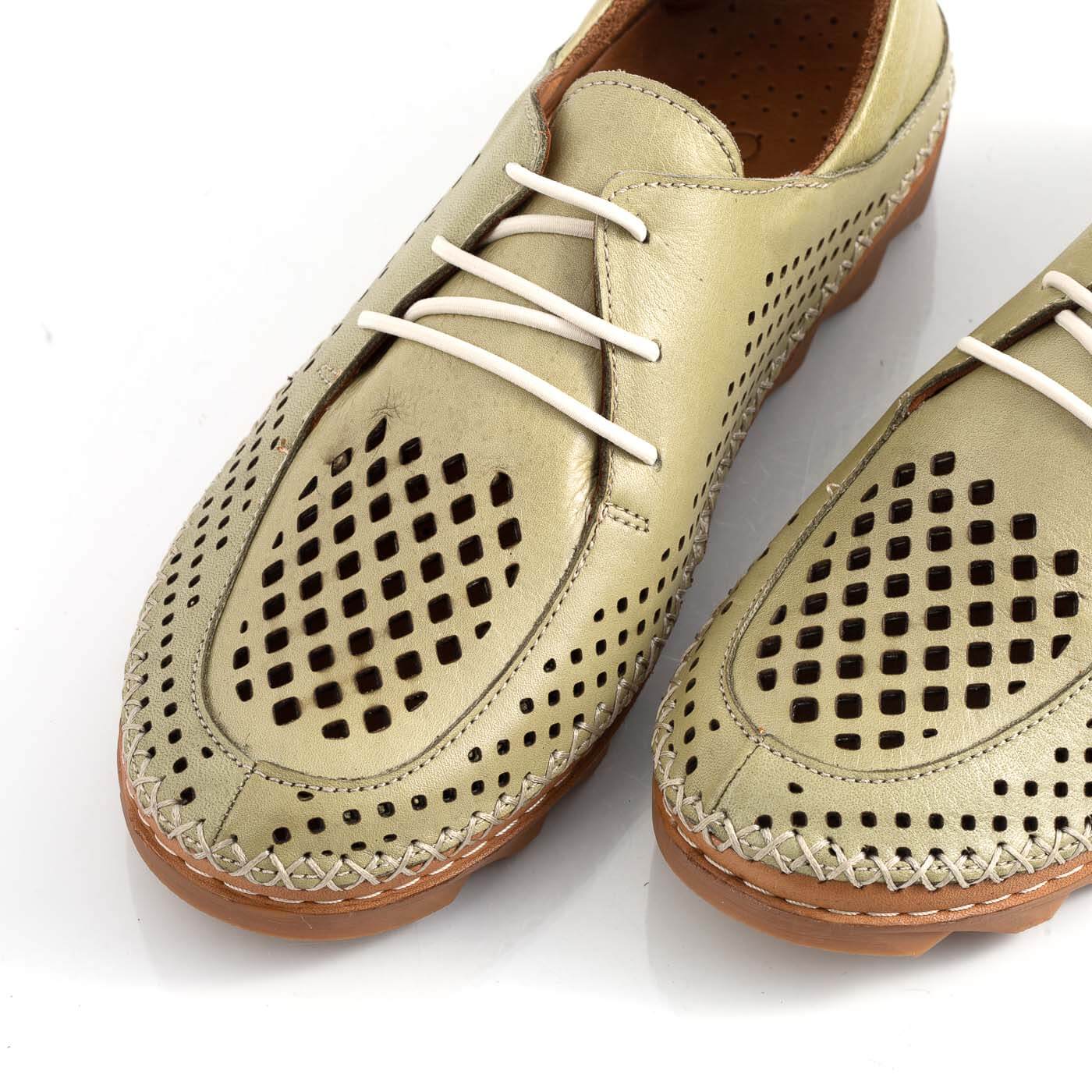Pantofi din piele naturala perforati cu siret