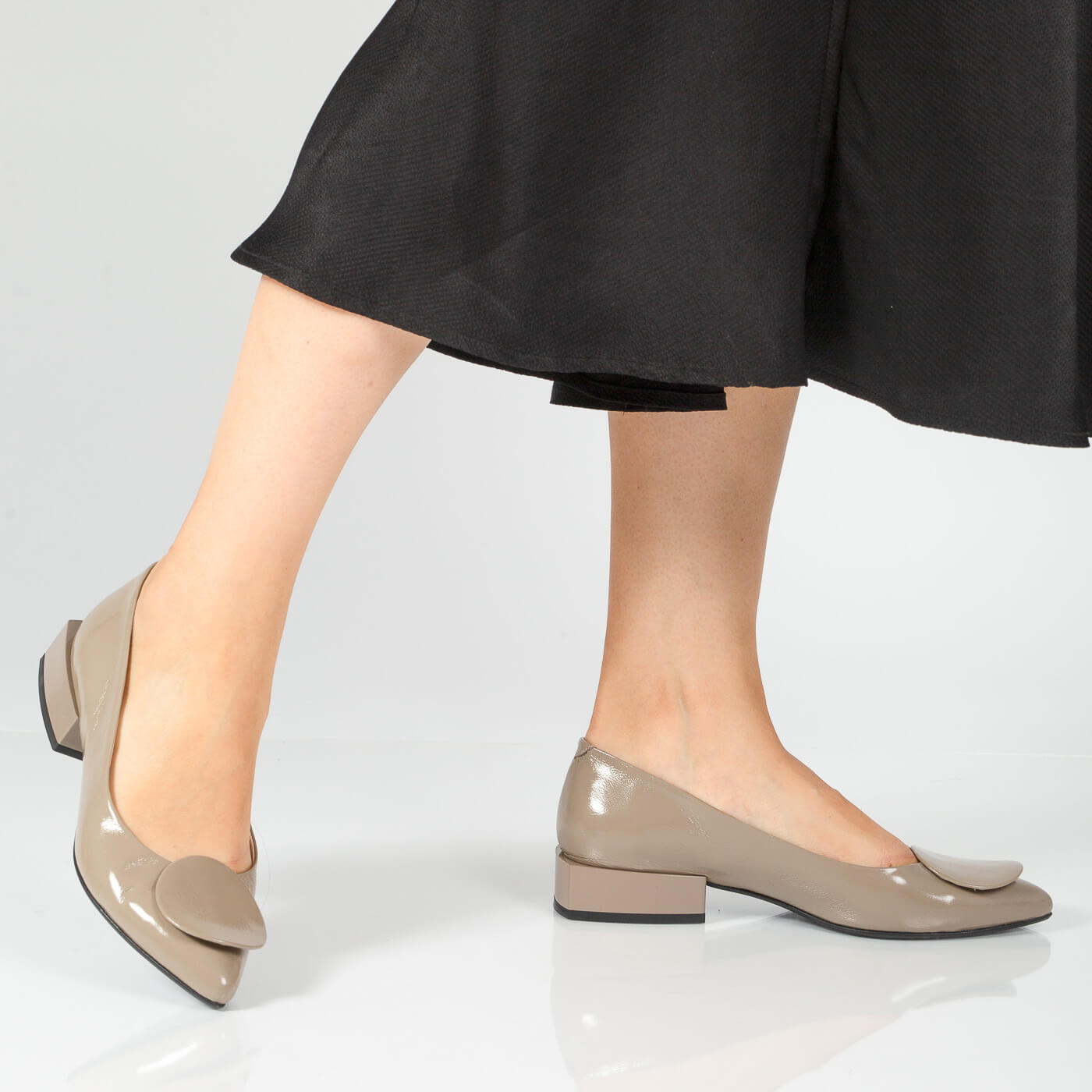 - Material exterior: Piele lacuita/ Piele intoarsa
