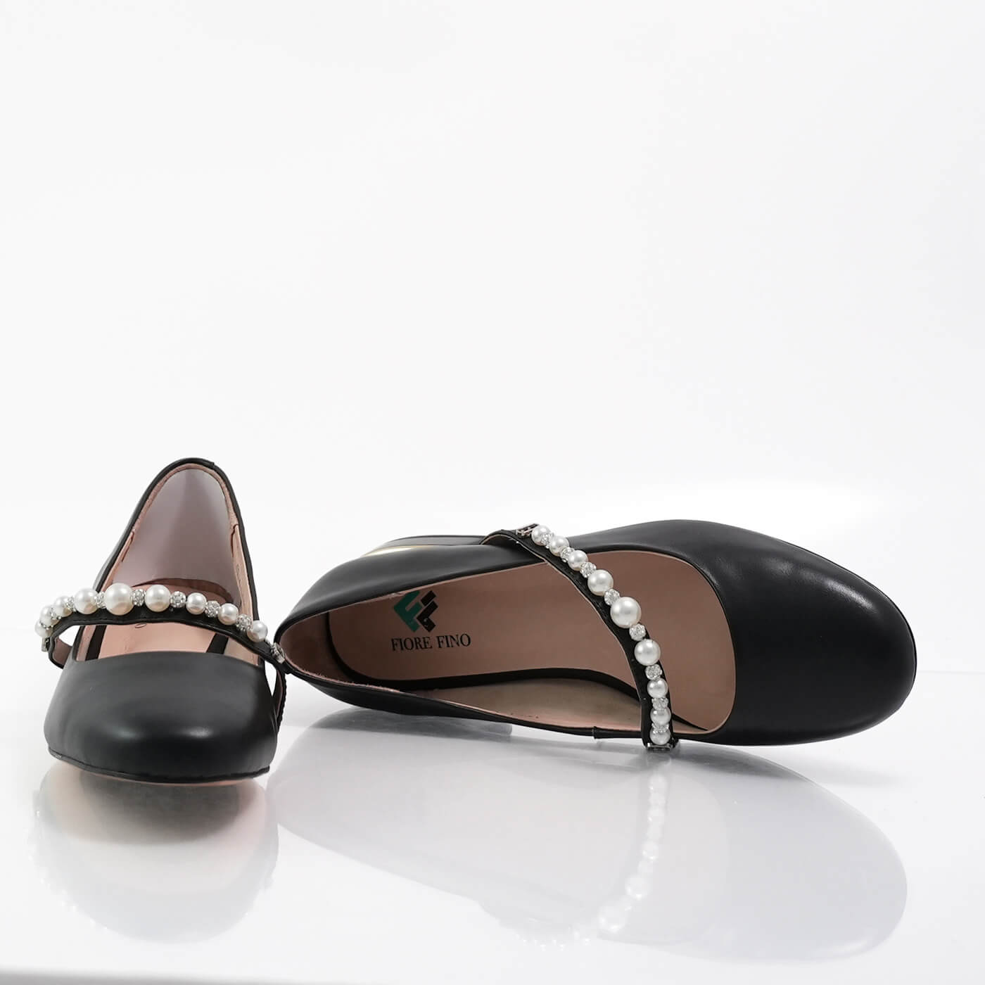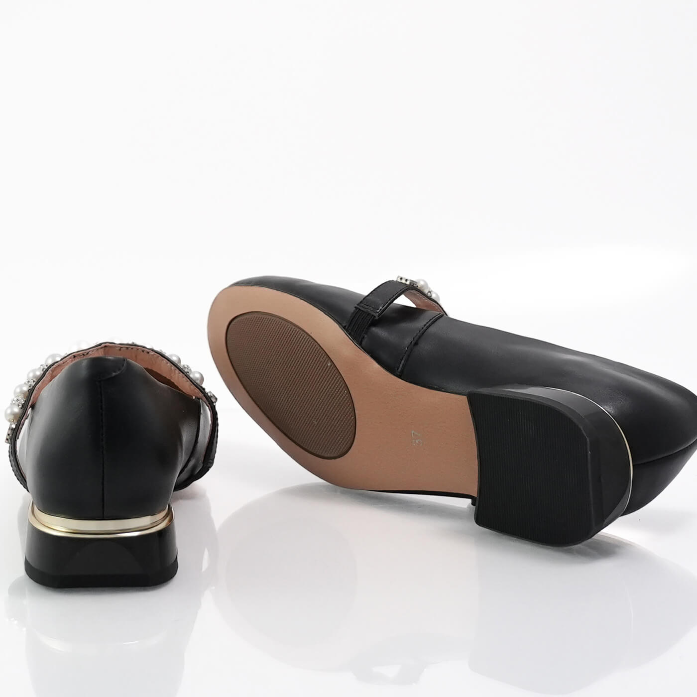 Pantofi Mary Jane din Piele Naturala cu Detalii Perlate