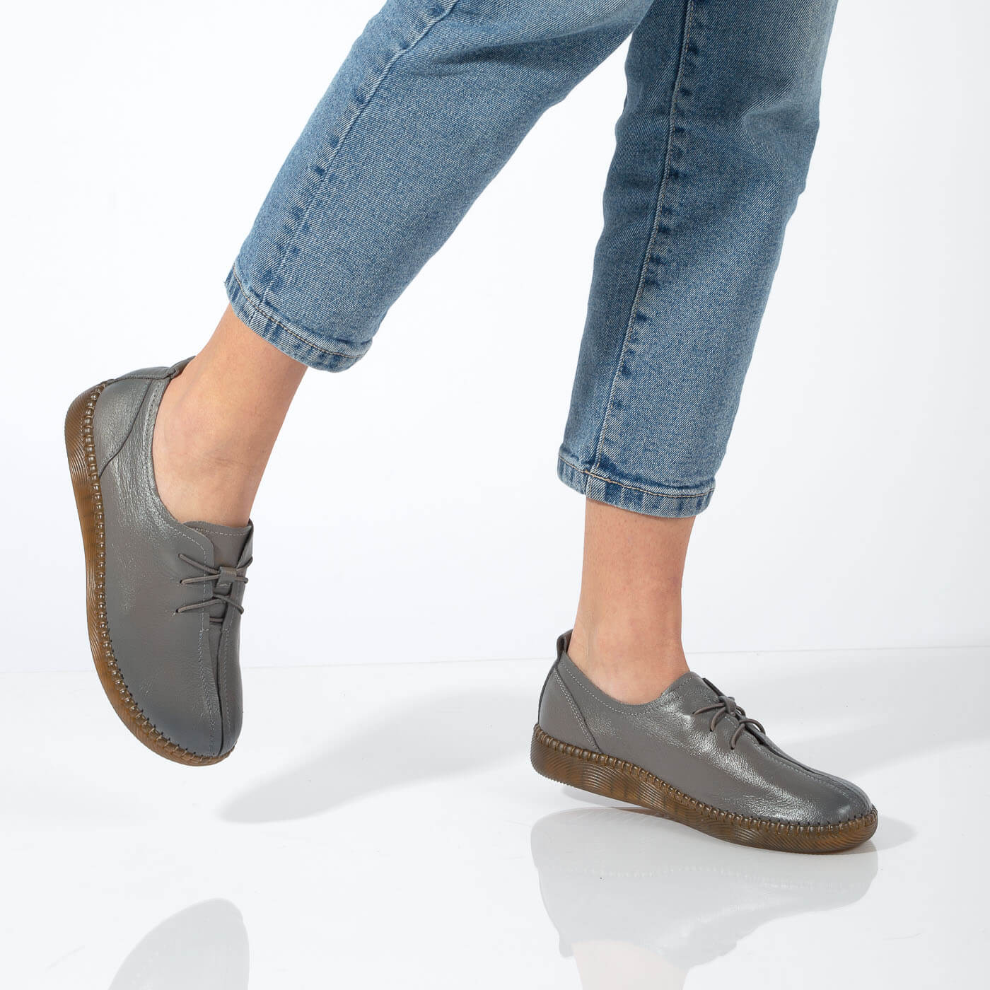 Pantofii dama din piele naturala foarte moale sunt ideali pentru persoanele care cauta incaltaminte comoda, perfecti pentru a fi purtati intreaga zi fara probleme. Pantofii dama Formazione sunt confectionati din piele naturala de inalta calitate atat in exterior, cat si in interior, au brant din piele naturala si talpa extrem de usoara, flexibila, din silicon cauciucat. Modalitatea de inchidere este snurul elastic, acest aspect fiind avantajos pentru o incaltare rapida, fara sa necesite efort. Daca optati pentru pantofii dama din piele naturala Formazione, aveti o gama variata de culori, iar noi va propunem sa achizitionati o marime mai mare decat cea obisnuita piciorului dumneavoastra, deoarece au calapodul lucrat mic.