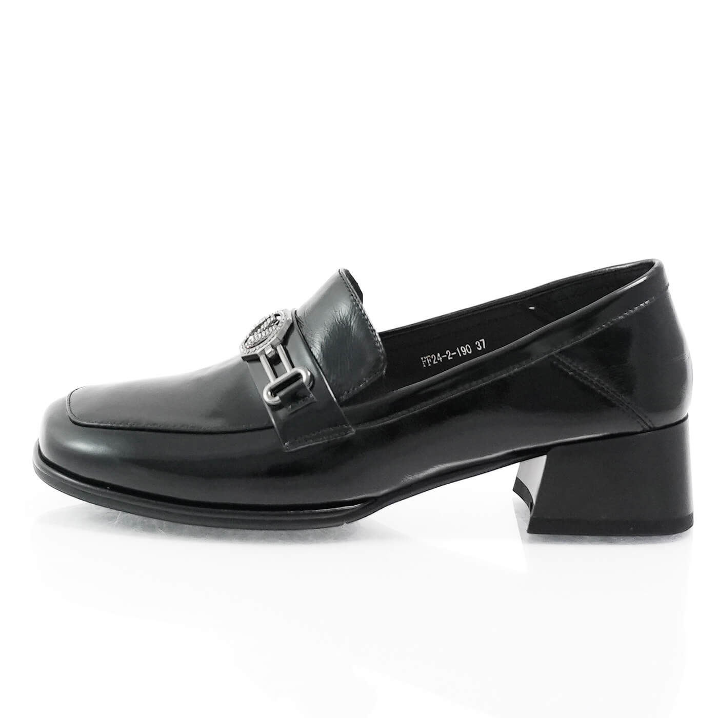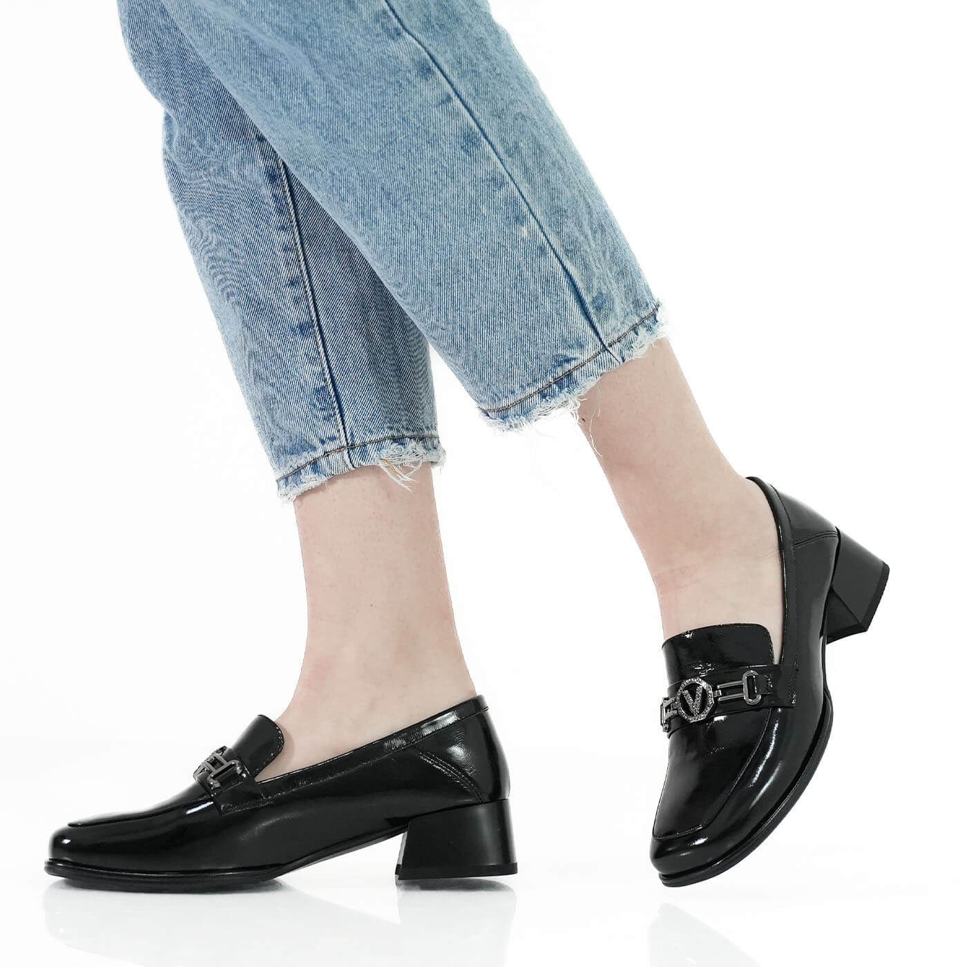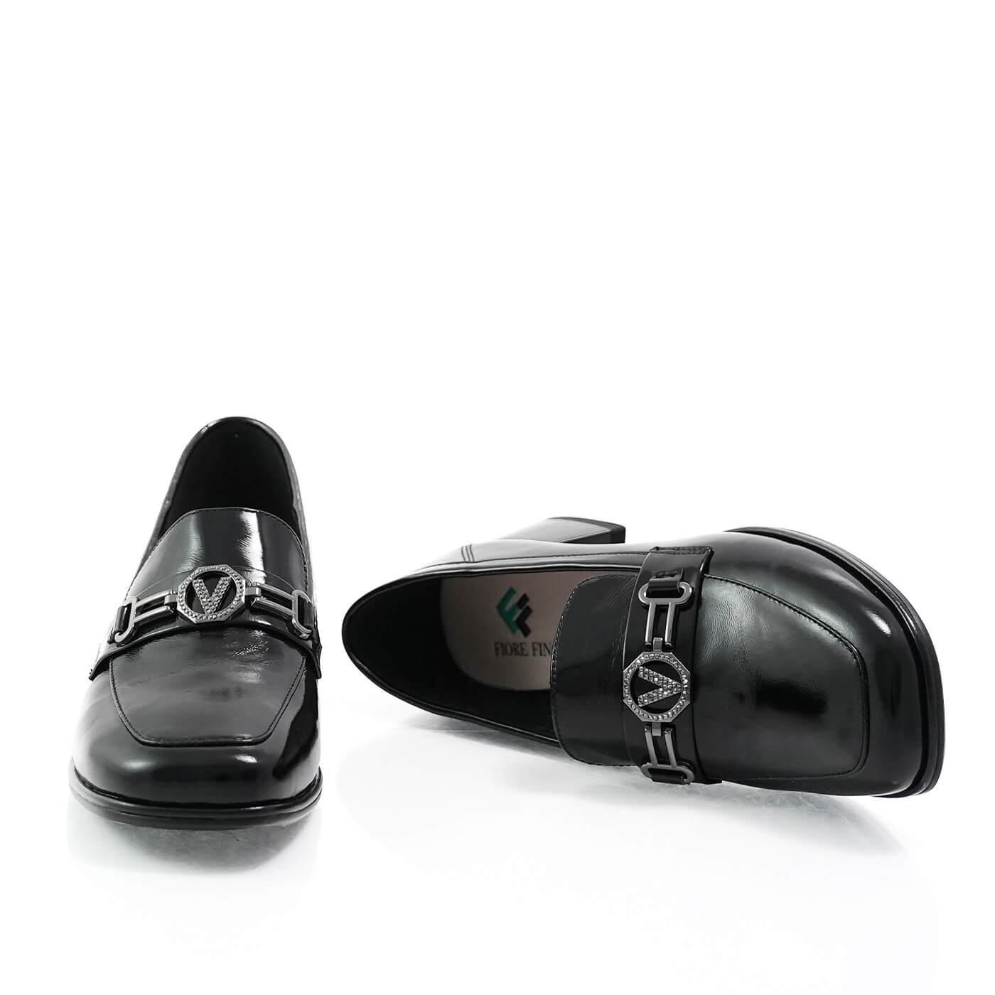 Pantofi dama din piele naturala cu accesoriu argintiu