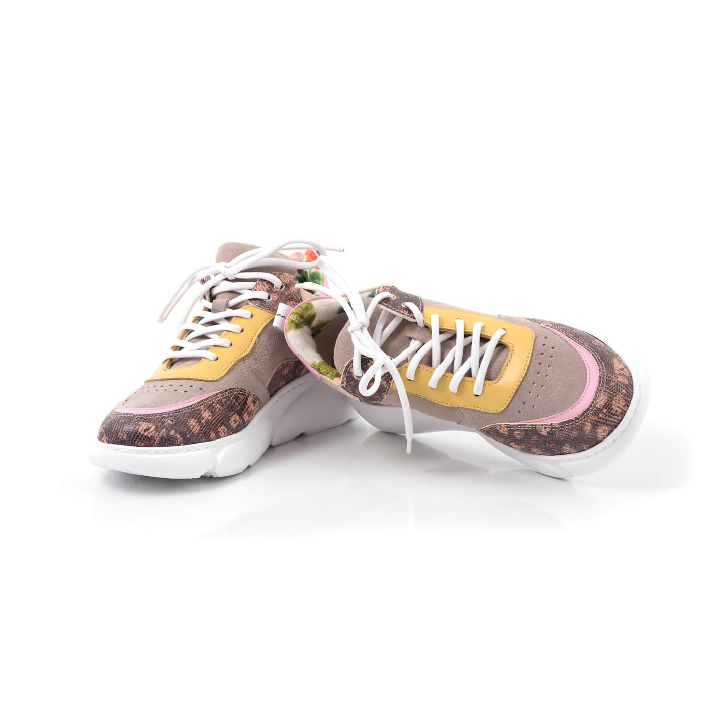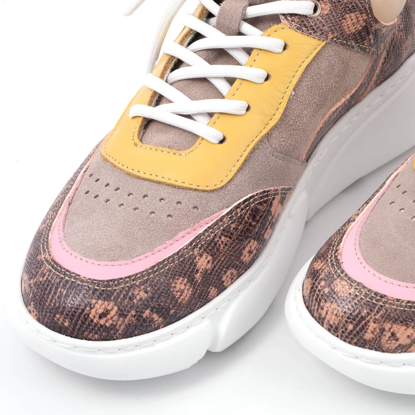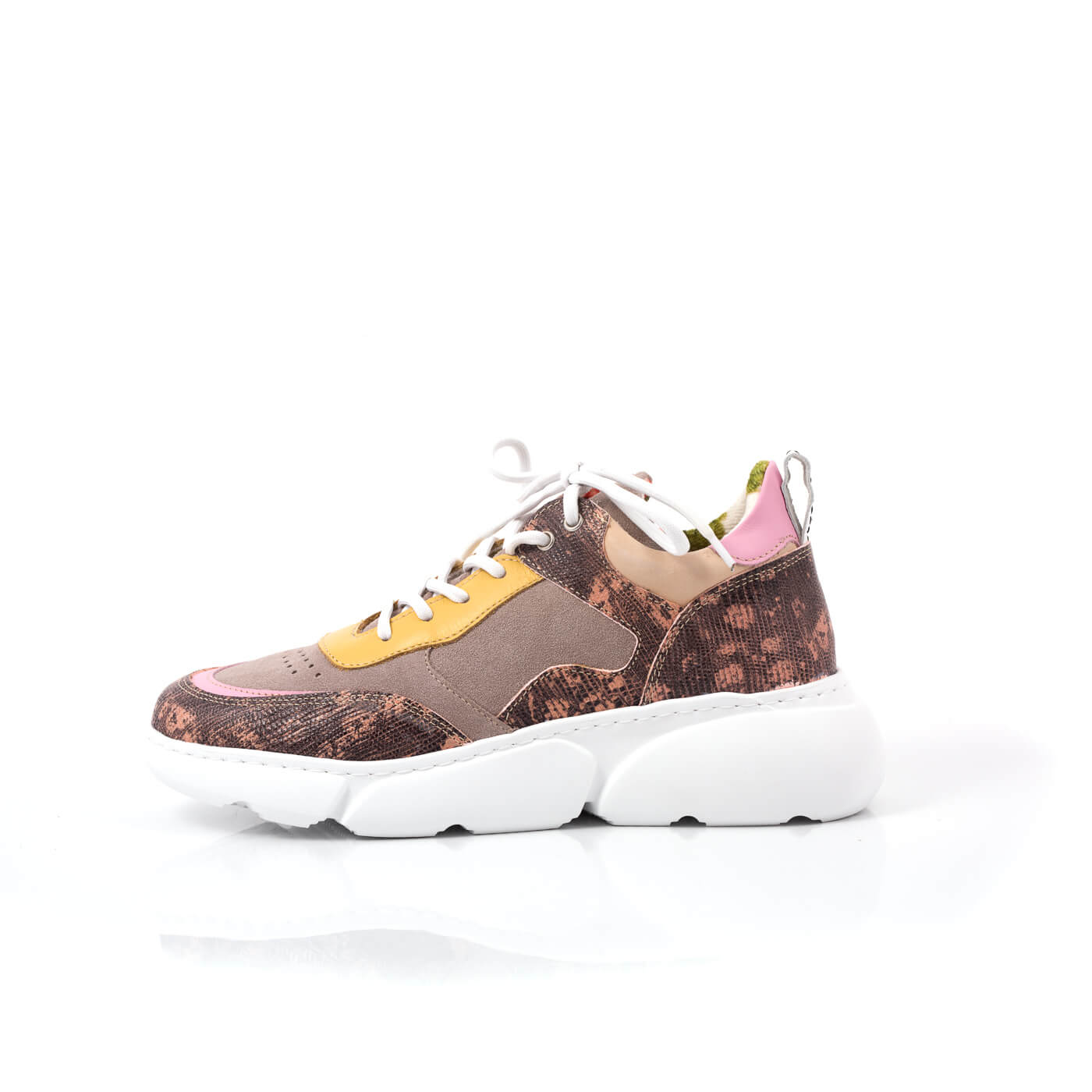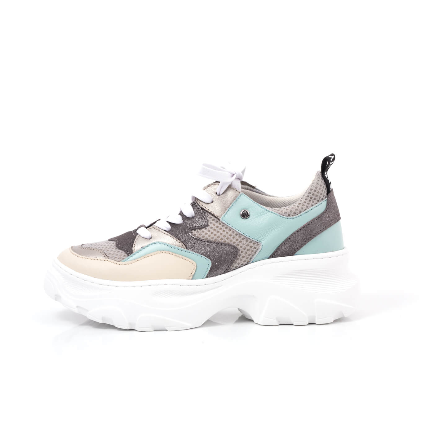 Pantofi sport cu talpa groasa cu siret, din piele naturala