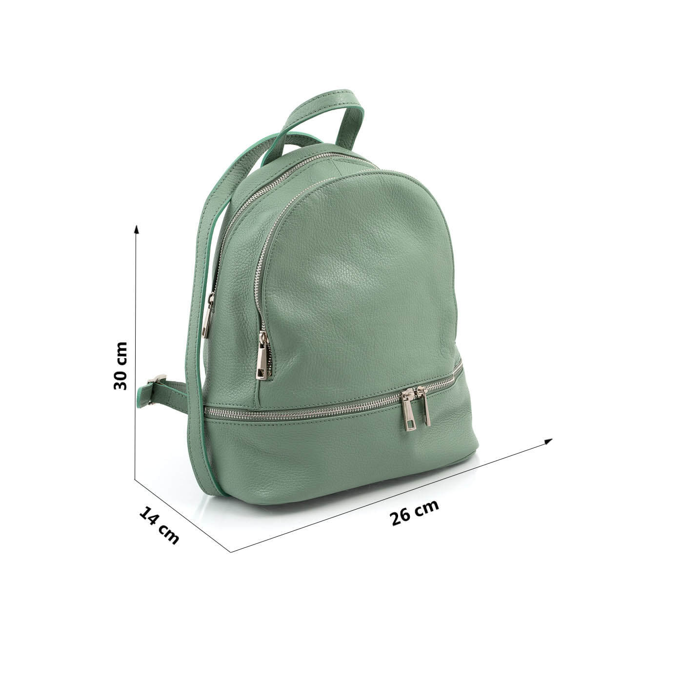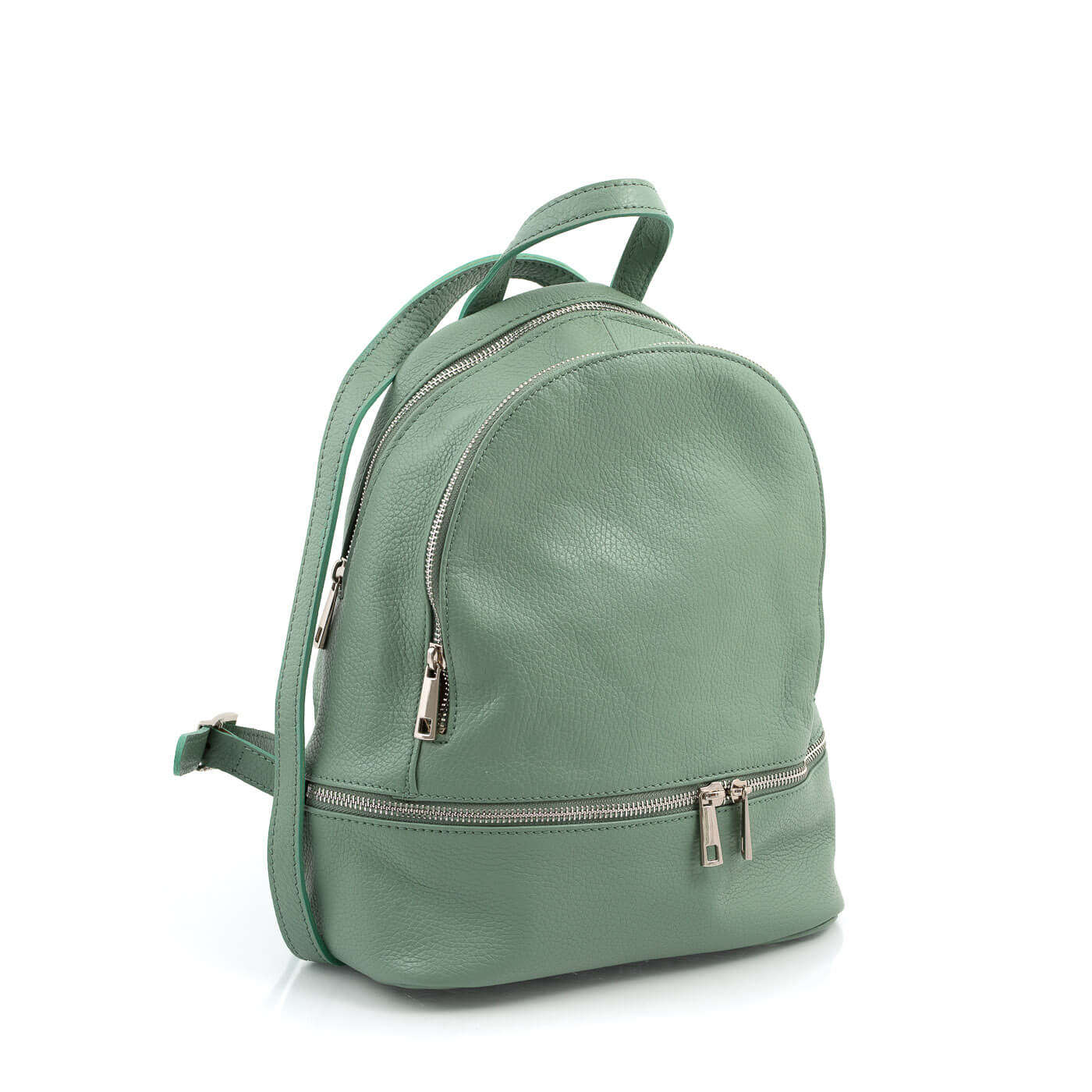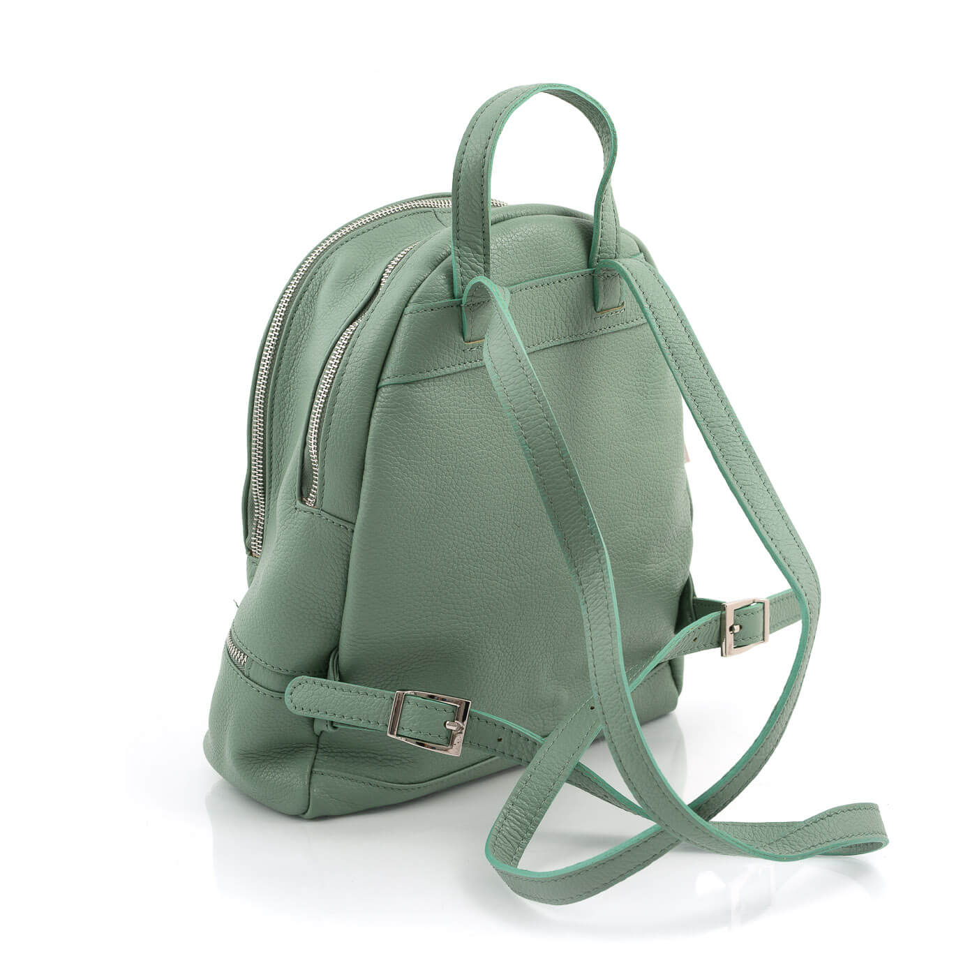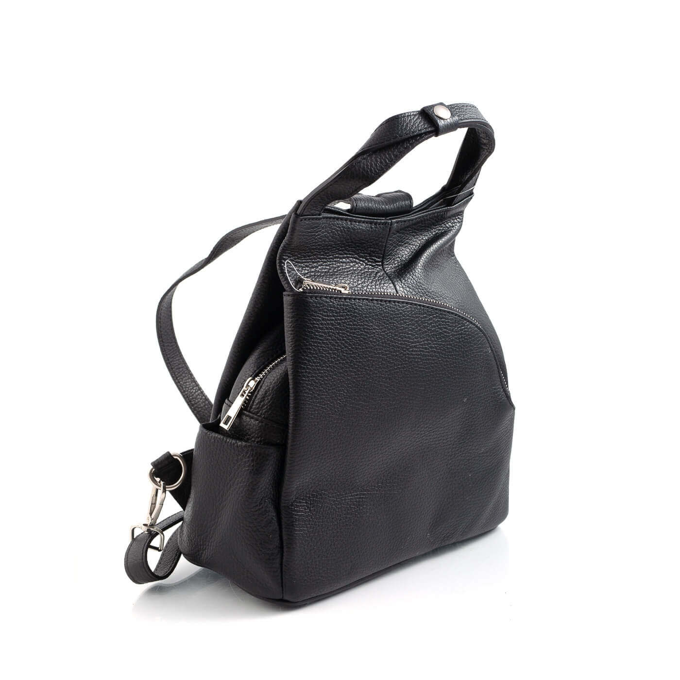 Rucsacul este prevazut cu un maner din piele pentru a fi purtat in mana sau pe brat si doua barete de umar reglabile.