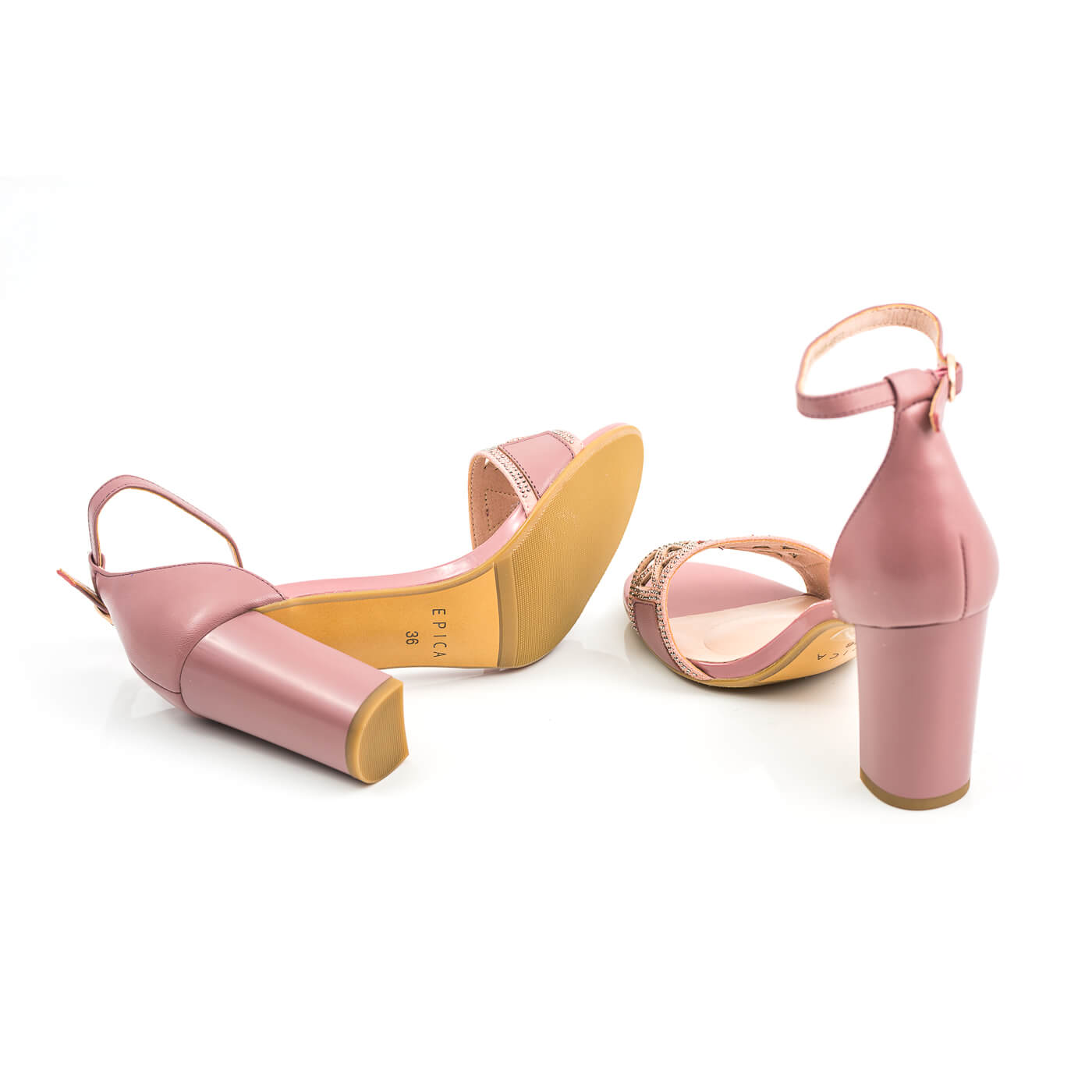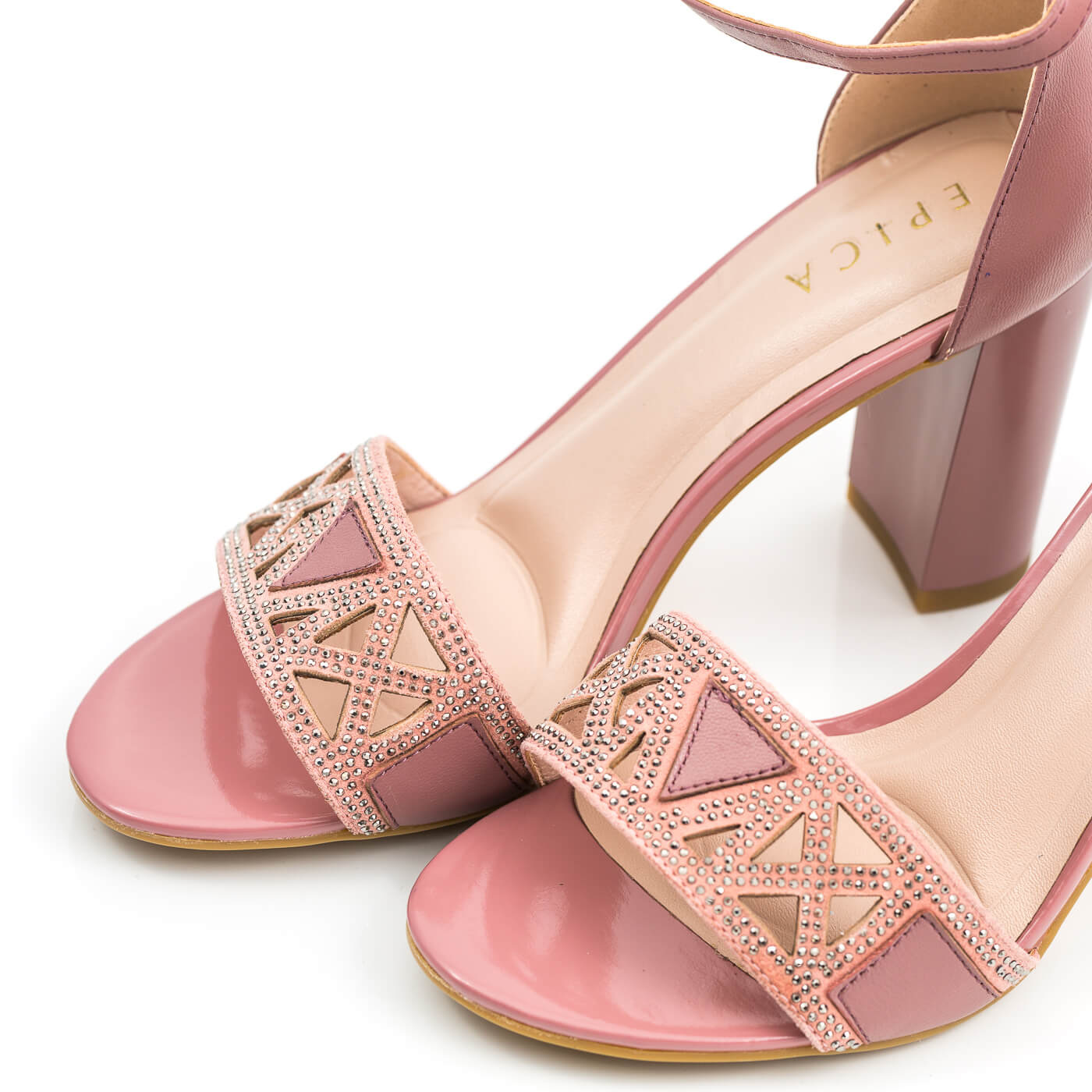 Sandale din piele naturala cu strasuri si bareta in jurul gleznei.